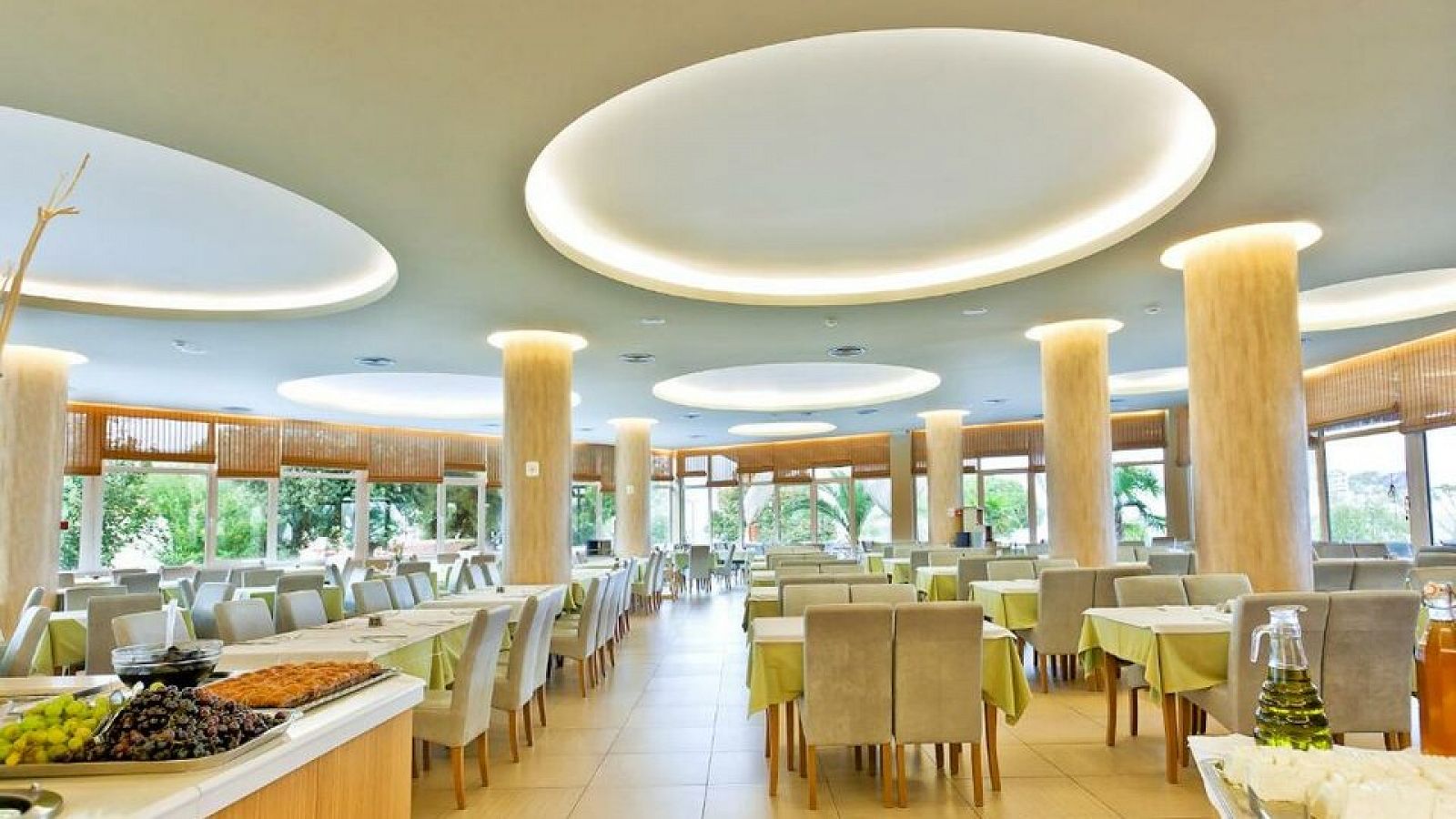SADRŽAJ: Recepcija, glavni restoran sa mediteranskom i internacionalnom kuhinjom, a la carte restoran, lobby bar, bar pored bazena, bar na plaži, spoljašnji bazen sa odvojenim dečjim bazenom, spa i wellness centar sa saunom, parnim kupatilom i masažama (doplaćuje se), fitnes centar, dečje igralište, mini klub za decu, besplatan Wi-Fi u zajedničkim prostorijama, parking, usluge pranja veša i hemijskog čišćenja (doplaćuje se), rent-a-car usluga (doplaćuje se), organizacija izleta (doplaćuje se), animacijski programi za decu i odrasle, sportski tereni (tenis, košarka, odbojka na pesku).