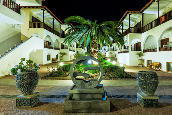 Sadržaj hotela: recepcija sa lobijem, sefovi na recepciji (uz doplatu na licu mesta), wi-fi Internet u javnim delovima hotela (besplatno), bazen, jacuzzi, sauna, teretana, restoran, menjačnica, bar na šetalištu iznad peščano – šljunkovite plaže. Suncobrani i ležaljke oko bazena su uključeni u cenu (uz kupljeno piće u „pool“ baru), a na plaži se doplaćuju . Peškiri za bazen i plažu se iznajmljuju uz depozit od 20 eur.