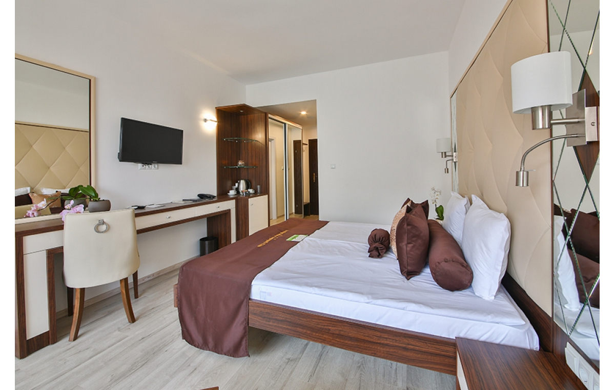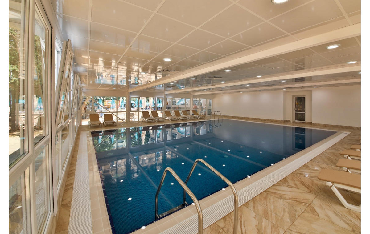 Sadržaj: restoran, lobby bar, bar pored bazena, aquapark sa dva bazena za odrasle i decu,aqua park za decu i odrasle, tobogani, fontane, ležaljke i suncobrani, Centar za dečju animaciju, SPA centar (unutrašnji bazen, sauna, đakuzi, slana soba, parno kupatilo, relax zona, fitnes centar i uz doplatu tretmani i masaže).