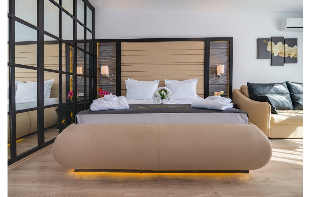 Double Deluxe Suite – veličine su oko 55m2, pogodne za velike porodice sa decom. Sastoje se od dve spavaće sobe, hodnika, kupatila i još jedan toalet. U svom sastavu imaju francuski krevet i sofu u jednoj sobi u dva odvojena kreveta u drugoj sobi, klimu, LCD TV, sef, wirelles internet, telefon, mini bar, kuvalo za vodu za kafu ili čaj, balkon i kupatilo sa fenom za kosu i toaletnim priborom.