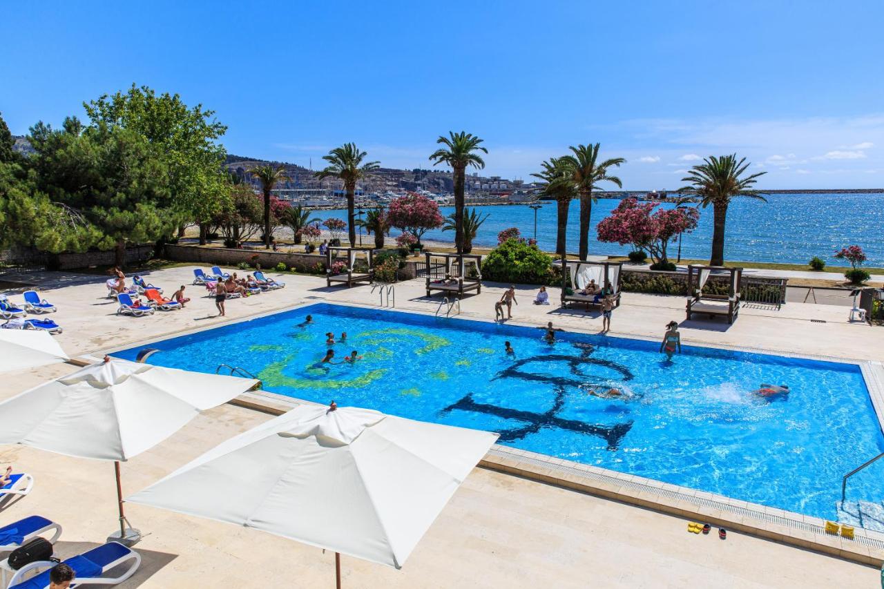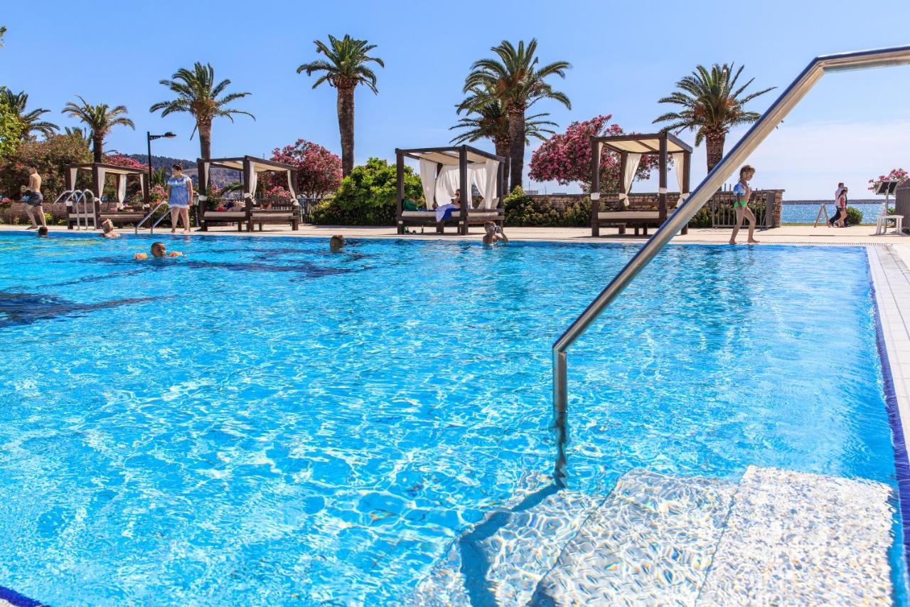 Plaža: Šljunkovitu gradsku plažu deli samo šetalište od hotela (širine oko 5 m). Plažni mobilijar gosti hotela plaćaju.