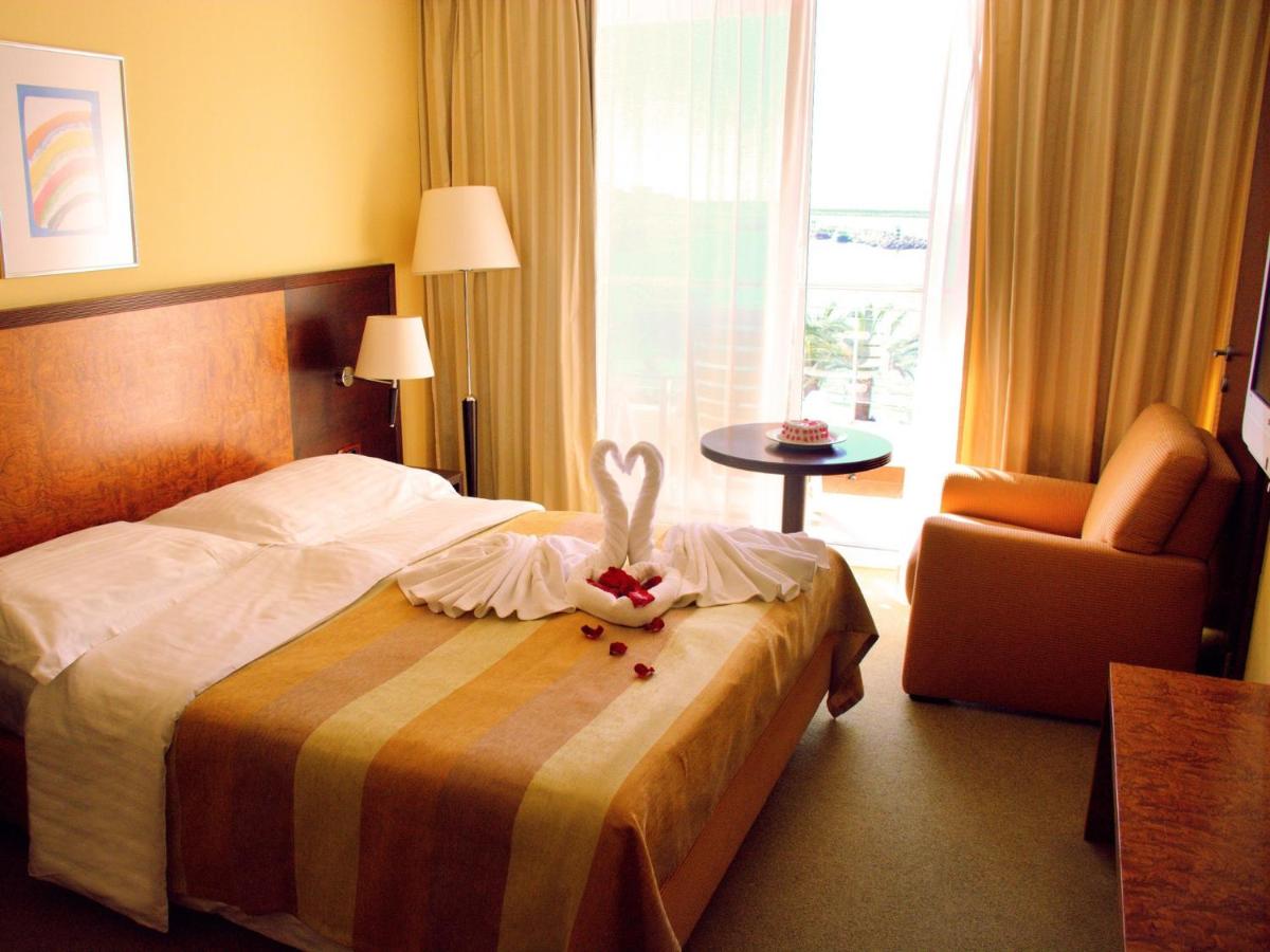 Smeštaj: Sobe i apartmani su udobni i moderno dizajnirani, sa izvanrednim pogledom na Marinu, plažu i morsku pučinu, na dvorski kompleks ili na planine u zaleđu grada. Hotel raspolaže sa 135 soba u kojima su gostima na raspolaganju: mini bar, klima uređaj, satelitski i kablovski TV program, sef, potreban accesoar i room service. Gosti mogu izabrati sobu sa kupatilom po želji: sa kadom i tuš-kabinom, ili kupatilo samo sa kadom ili samo sa tuš-kabinom.