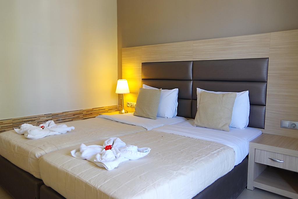 Sadržaj hotela: Hotel ima veliki bazen, restoran, bar na bazenu, malu teretanu,recepciju, sef na recepciji (uz doplatu) i parking prostor. Ležaljke i suncobrani oko bazena i na plaži su besplatni. Doručak i večera se služe po principu švedskog stola.