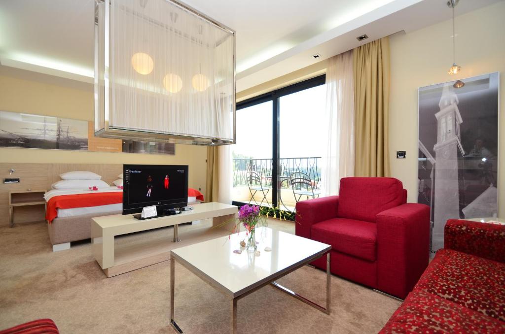 Aerodrom u Tivtu udaljen je 27 km od smeštaja, a Aerodrom u Podgorici 57 km. Privatni parking u okviru objekta može se besplatno koristiti, a usluga prevoza od/do aerodroma dostupna je uz doplatu.