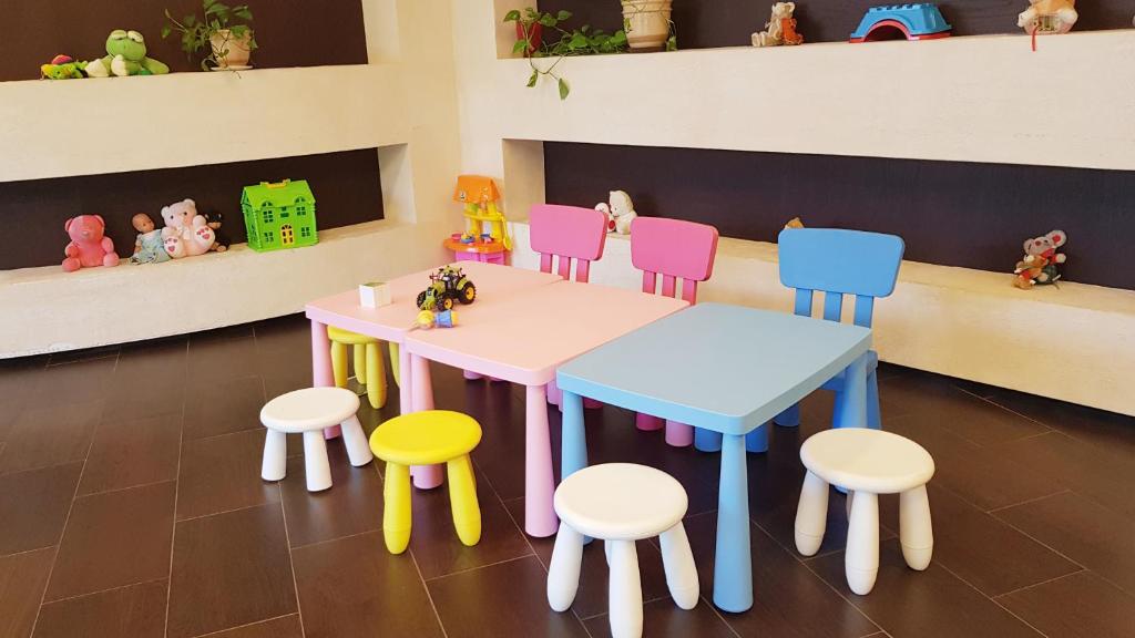 Sve smeštajne jedinice imaju klima-uređaj, TV sa kablovskim kanalima i sef, a pojedine takođe uključuju terasu ili balkon. Smeštajne jedinice poseduju sopstveno kupatilo sa tušem i besplatnim toaletnim priborom. Na raspolaganju je i zajednička terasa za sunčanje.