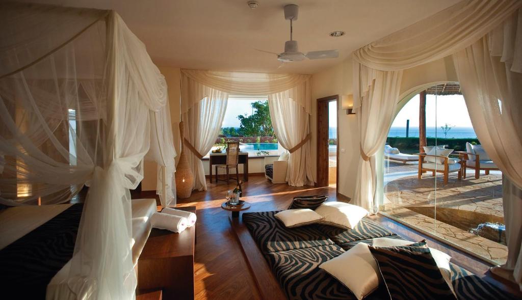 Sve smeštajne jedinice su klimatizovane. Pojedine se nalaze na samoj plaži Nungvi (Nungwi) i poseduju sopstveni bazen, hidromasažnu kadu i vrt.