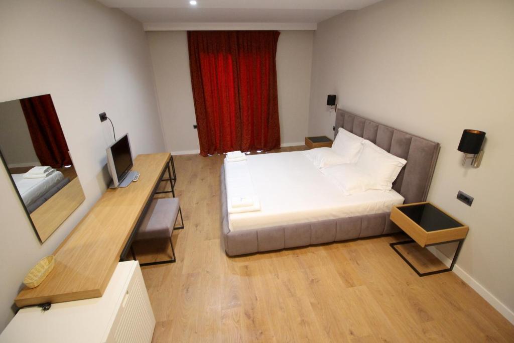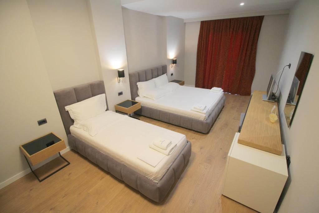 Hotel Saranda International, Saranda (Albanija) - Hotel Saranda International smešten je na 1,5 km od centra grada i poseduje sopstvenu šljunkovitu plažu sa barom, ležaljkama i suncobranima. Do drevnog grada Butrinta može se stići za 20 minuta vožnje, dok je stara tvrđava u Đirokastri udaljena 54 km. Najbliži međunarodni aerodrom nalazi se na grčkom ostrvu Krf.
