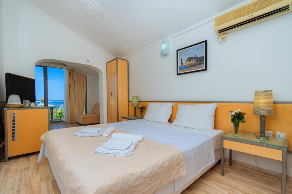 Sadržaj soba: sve sobe su opremljene klimom, frižiderom, kablovskom televizijom, wifi, sve imaju balkon ili terasu, neke imaju pogled ka moru.