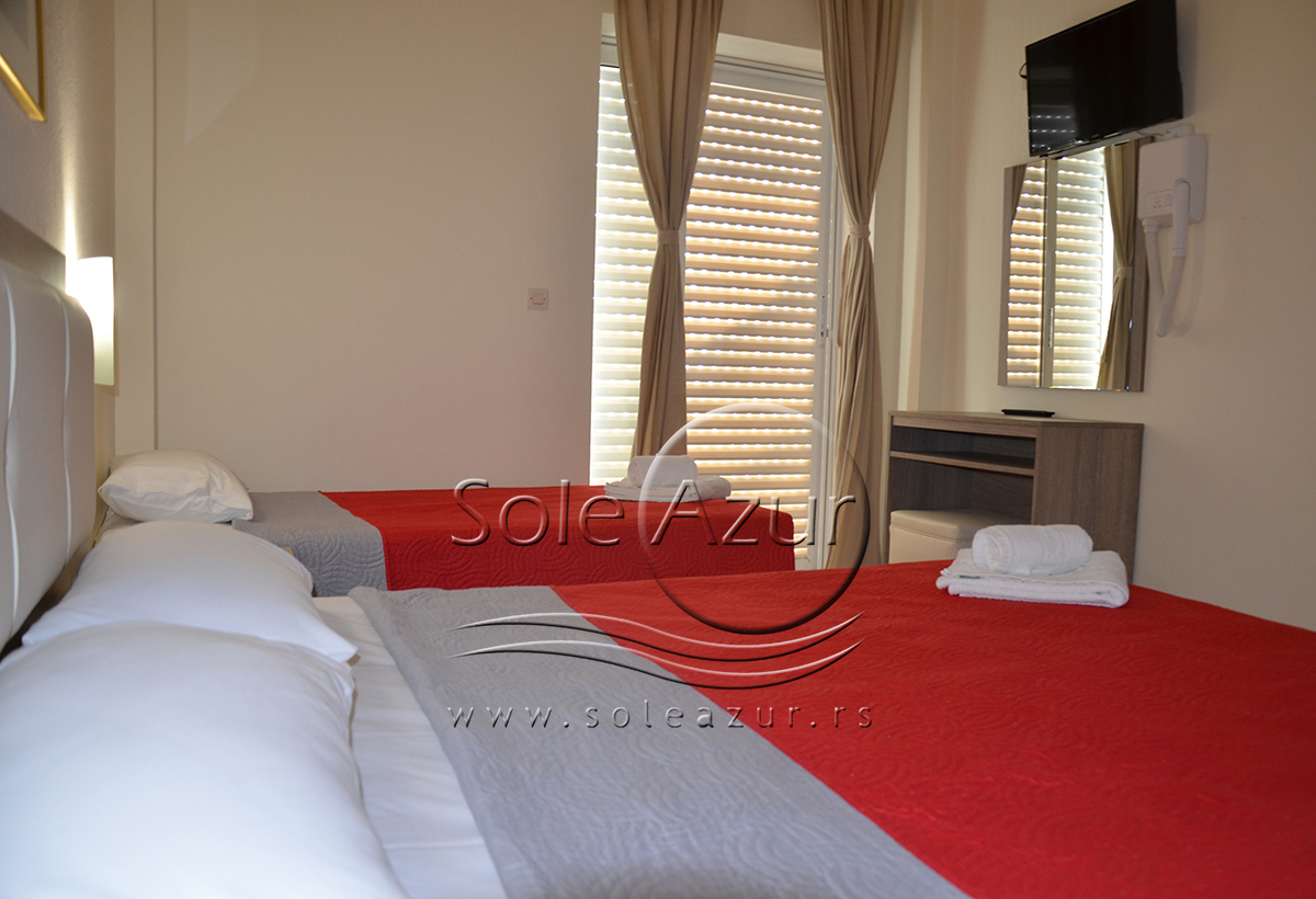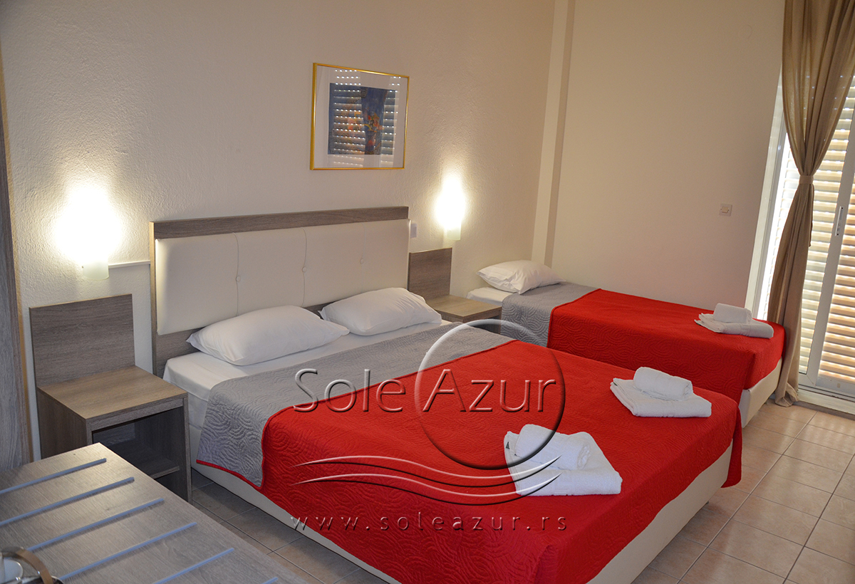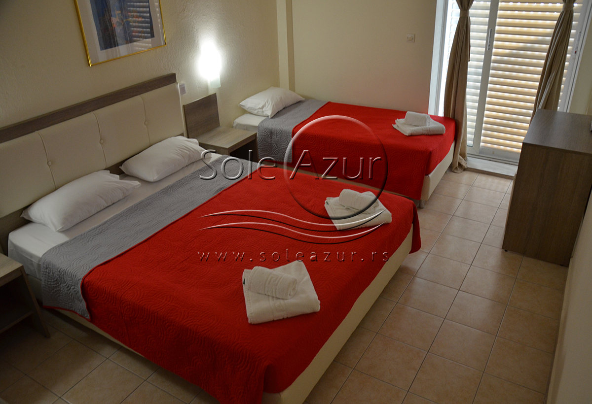 Hotel poseduje standard i superior dvokrevetne i trokrevetne sobe. Smestajne jedinice opremljene su frižiderom i TV-om sa satelitskim kanalima. Svaka jedinica uključuje sopstveno kupatilo sa fenom za kosu i besplatnim toaletnim priborom. Dan možete započeti doručkom na bazi švedskog stola koji se služi svakog dana od 08:00 do 10:00 (postoji mogućnost promene satnice i tačnu satnicu ćete dobiti na recepciji hotela).