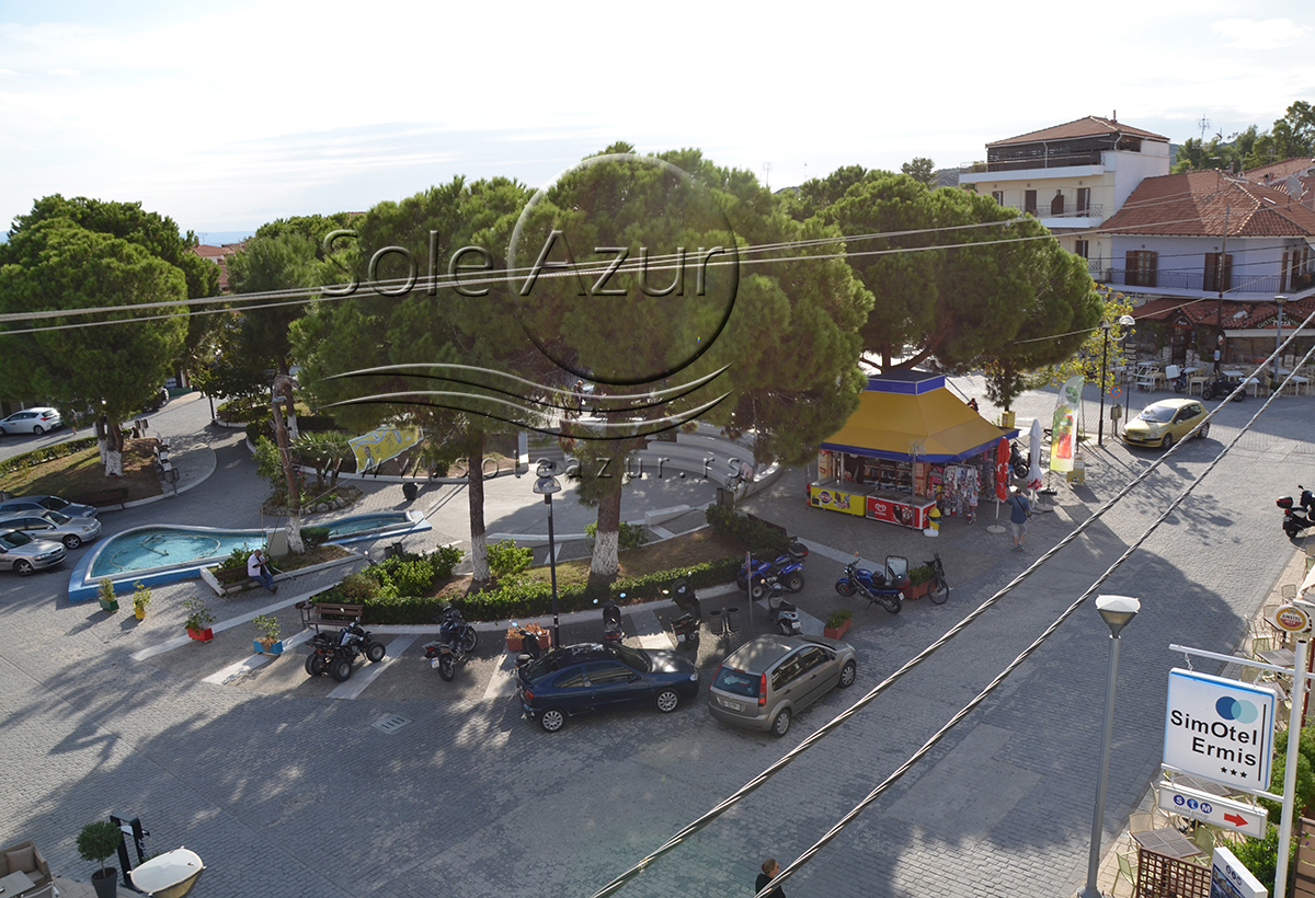 Hotel SimOtel Ermis 3* se nalazi u nejlepšem delu turističkog mesta Hanioti, u strogom centru grada. Kako se nalazi u centru grada, na prepoznatljivom trgu, oko koga se nalazi šetalište, mnoštvo lepih restorana, kafića, suvenirnica, butika, zadovoljiće potrebe svih putnika. U blizini Hotela SimOtel Ermis se nalazi i samoposluga, pekara, kao i sve što je potrebno gostima na letovanju. Najbliža plaža je gradska plaža i ona se nalazi na oko 100m od hotela SimOtel Ermis. Hotel raspolaže sa recepcijom, restoranom za doručak, wi-fi internet konekcijom. Doručak u hotelu SimOtel Ermis je na bazi švedskog stola (samoposluživanje). Hotel se preporučuje putnicima koji žele da budu u blizini plaže, a u strogom centru dnevnog i noćnog života.
