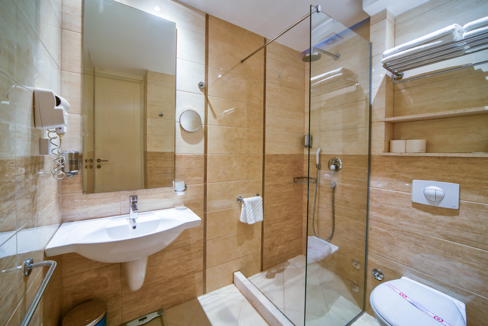 Comfort dvokrevetna soba: Ugodne dvokrevetne sobe sa odvojenim krevetima i pomoćnim ležajem. Pomoćni ležaj je trosed. Sobe posjeduju terasu sa mobilijarom za sedenje i pogledom na atrijum ili unutrasnjost. Sobni sadržaj: sef,telefon, klima, sto, kablovska televizija, plazma TV, internet bez doplate (u sobama i na javnim površinama), servis za buđenje/AlarmMini, frižider (mini bar na upit), utičnica pored kreveta,dječiji krevetac (uz doplatu), orman.