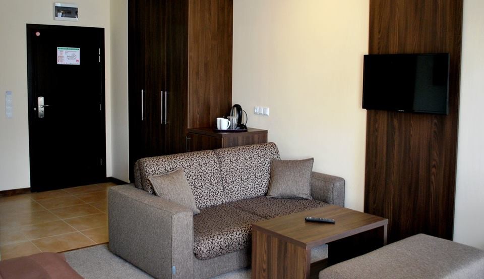 Jednosobni apartman za smeštaj 2-4 osobe (2+2): spavaća soba sa francuskim ležajem i dnevni boravak sa sofom na razvlačenje. Namenjen smeštaju do 4 osobe.