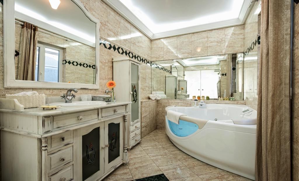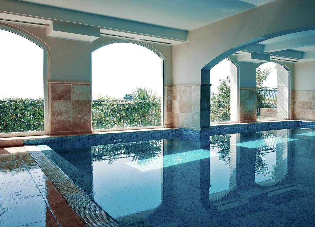Hotelski sadržaji : Restoran, aperitiv bar, taverna, vinski podrum, zatvorena terasa sa bibliotekom, bilijar sala, bridž, zatvoreni bazen, fitness, masaža, sauna, jakuzzi, tursko kupatilo, parking, garaža.