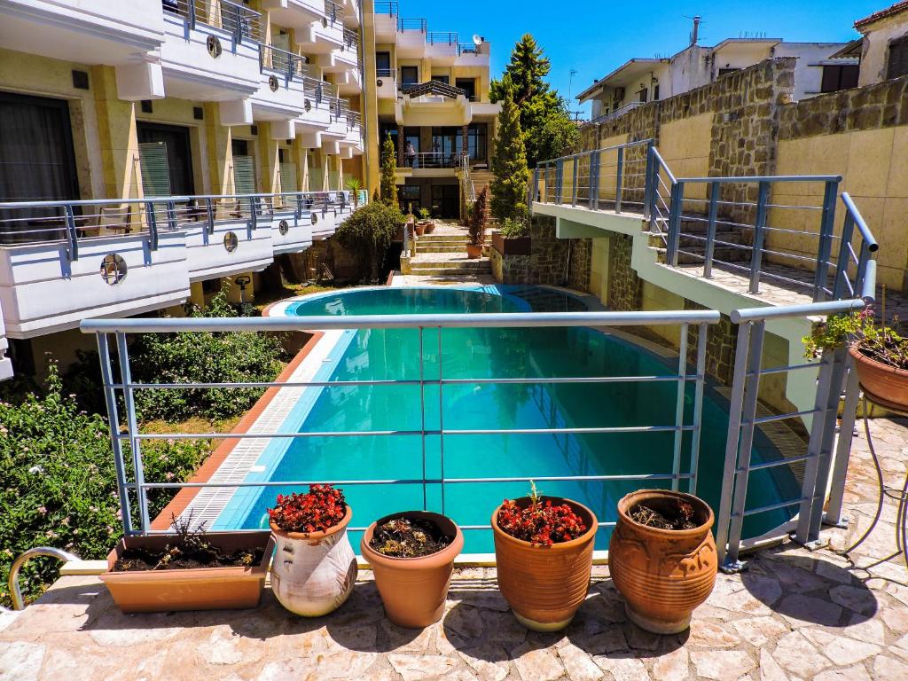 Sadržaj hotela: Hotel ima mali bazen, restoran, lobi, krovni vrt sa barom i jakuzzijem… Gostima su na raspolaganju recepcijski lobby, piano bar, bazen sa pool-barom, dečji bazen i igraonica, mini market i restoran. Na krovu hotela se nalazi a la carte restoran, tzv. roof garden sa koga se pruža panoramski pogled na zaliv, more i marinu Nea Skionija