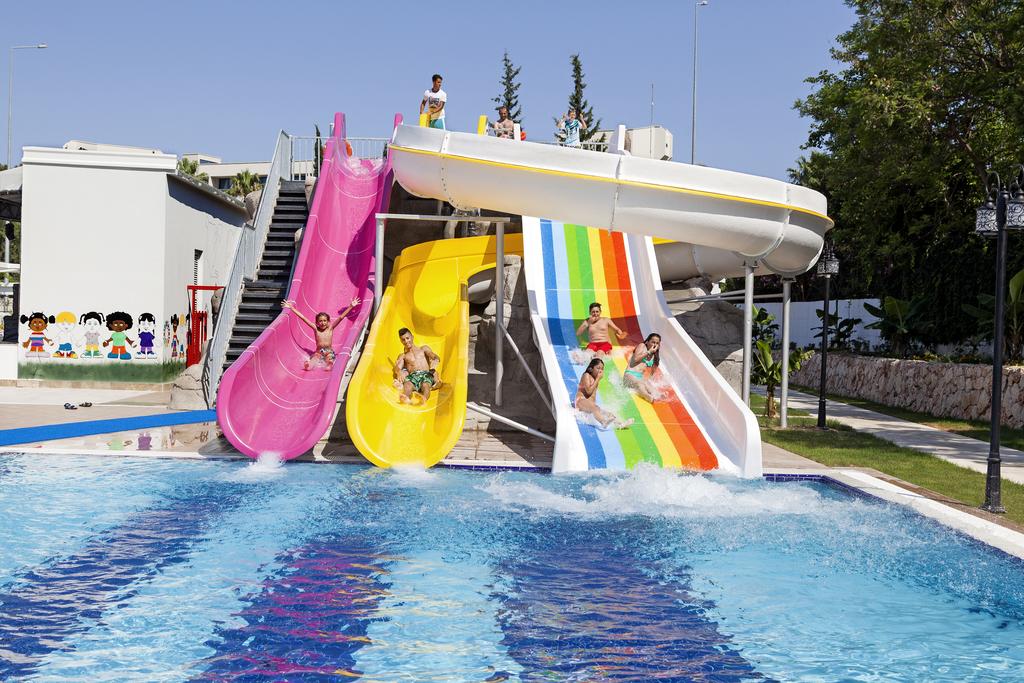 Restoran, tri bara, otvoreni bazen, tri vodena tobogana, ležaljke i suncobrani kraj bazena, Wi-Fi internet je besplatan u lobiju, akvabik, osvetljenje teniskih terena (uz doplatu), hamam, stoni tenis, pikado, aerobik, animacije u toku dana, odbojka na plaži, sportovi na vodi (uz doplatu),sauna, masaža (uz doplatu), iznajmljivanje teniske opreme (uz doplatu), teretana, teniski teren, dečije igralište, dečiji mini klub (4-12 godina), dadilja, perionica veša, prodavnica.