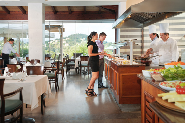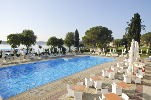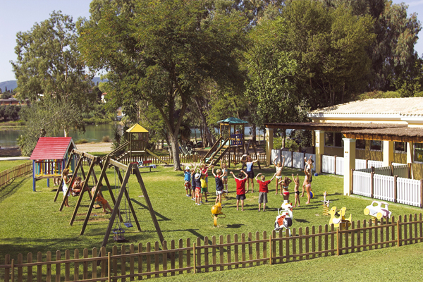 Sadržaj hotela: Hotel ima 370 soba koje su rasporedjene u glavnoj zgradi, zgradi “Corcyra gardens” i u bungalovima, glavni restoran, parking, rent a car, kineski restoran, tri bara, bazen, dečiji bazen, teren za tenis, odbojku, košarku, golf, i mini golf, bilijar, stoni tenis, igralište za decu, animacije i mini klub, jakuzzi na otvorenom, prodavnica suvenira, dorktor na poziv.