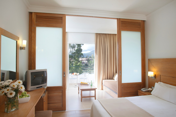 *Porodične sobe (family room) se nalaze u “Corcyra gardens” zgradi, veličine su oko 26m2, namenjene su za 2-4 osobe i sastoje se iz spavaće sobe (2 standardna ležaja ili „francuski ležaj“ ) i dnevnog sobe (2 sofe) koje su odvojene kliznim vratima.