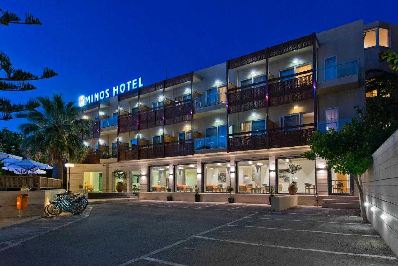 Minos Apart Hotel 4* (Retimno, Krit) - se na 190 m od peščane plaže od koje ga dele ulica i šetalište. Minos Apart Hotel je novi deo Minos hotelskog kompleksa. Nalazi se u Retimnu, na 1 km od centra grada, starog dela grada i luke. Aerodrom u Hanji udaljen je 65 km, a aerodrom u Heraklionu 80 km.