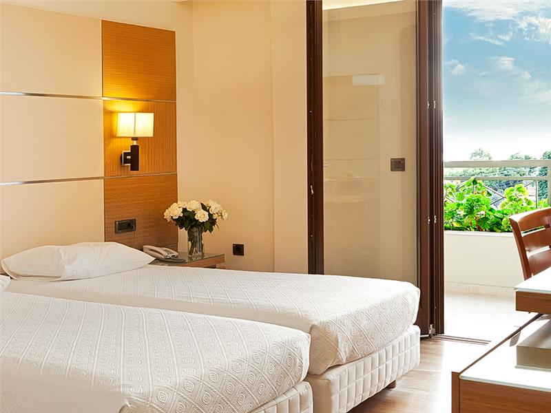 Sadržaj hotela: Moderno opremljene i prostrane sobe sa kupatilom imaju velike verande sa prelepim pogledom na zaliv Evoikos i veličanstveni vrt sa bazenima. Bežični internet vam je na raspolaganju u svim sobama uz doplatu. Rekreaciju u hotelu Miramare garantuju 2 bazena sa slatkom vodom, tereni za tenis i košarku i fitnes sala sa saunom.
