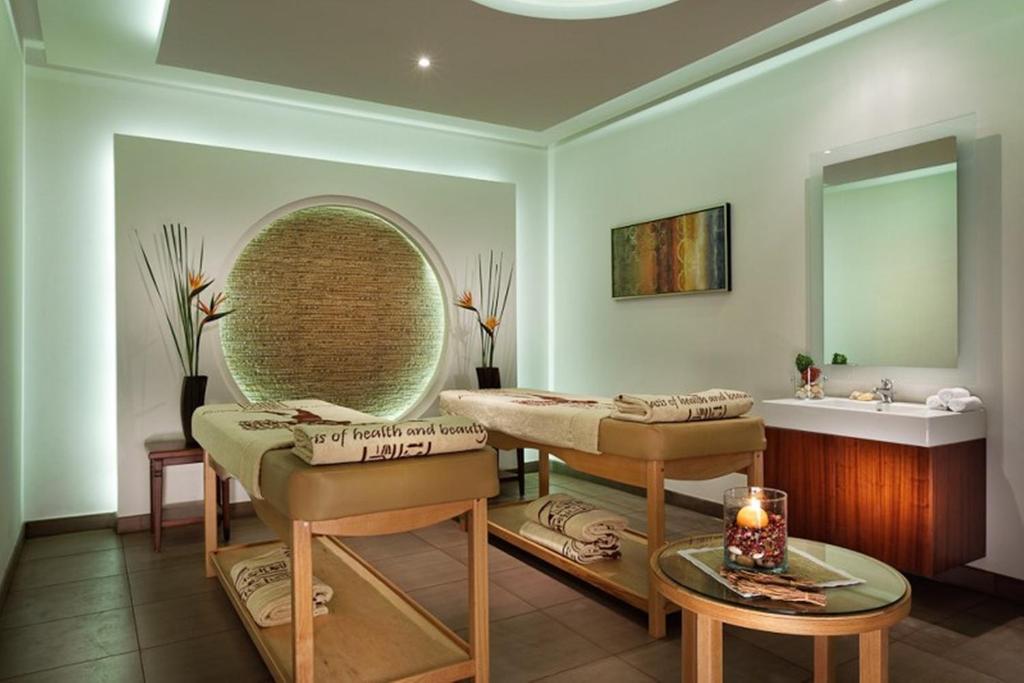 Sadržaj: recepcija, restoran, a la carte restoran, snek bar, bar pored bazena, bar na plaži, tri bazena, bazen za decu, igralište za decu, mini klub, spa centar (sauna, tursko kupatilo, đakuzi, prostorije za masažu), besplatan Wi-Fi internet u svim javnim prostorijama hotela, teniski tereni, fitnes centar, razni sportovi na vodi i ronilački centar.