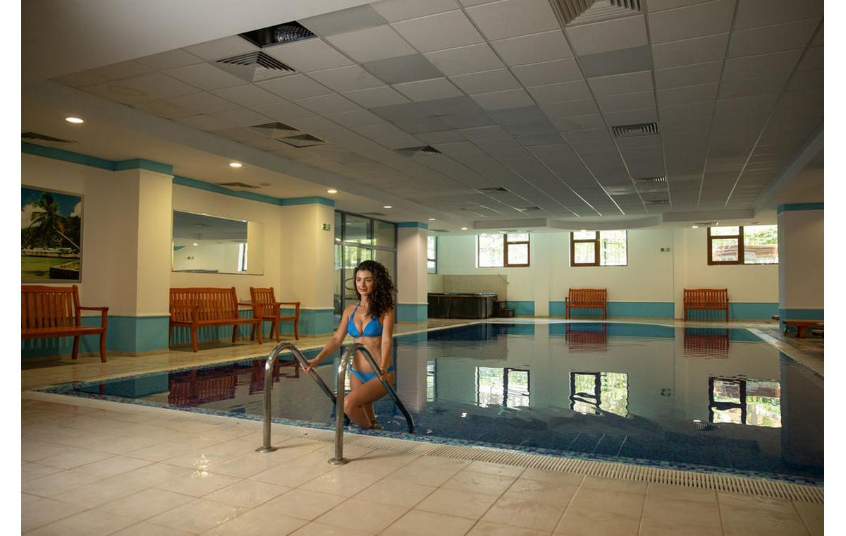 Sadržaj : Hotel poseduje recepciju, lift, restoran , terasu, baštu, otvoreni i zatvoreni bazen, aquapark sa toboganima, bar, saunu, fitnes centar, salon za masažu, stoni tenis, besplatan parking za goste hotela, WIFI besplatan u lobiju,plaća se u sobama.Spa centar hotela opremljen je saunom, masažama, hidromasažom i fitnesom. Gostima su na raspolaganju i kozmetičke usluge. Elegantni bife restoran pored predvorja ima predivan pogled na hotelsku baštu i bazen.