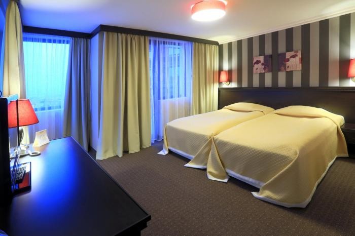 Soba za smeštaj (2+1): moguće je smestiti 2 odrasle osobe i 1 dete. Francuski ili dva odvojena ležaja, pomoćni ležaj, grejanje, TV, telefon, minibar, WiFi, kupatilo sa tušem i fenom.