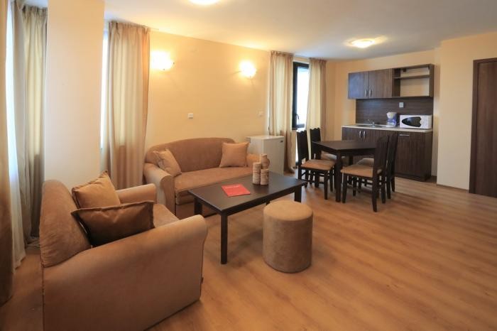 Jednosobni apartman za smeštaj 2-4 osobe (2+2) – odvojen od centralne zgrade, u bloku: spavaća soba sa francuskim ležajem, dnevni boravak sa sofom na razvlačenje, grejanje, opremljena kuhinja sa frižiderom i posuđem, kupatilo sa tušem i fenom. Namenjen smeštaju porodicama sa maksimalno 2 odrasle osobe i 2 dece.