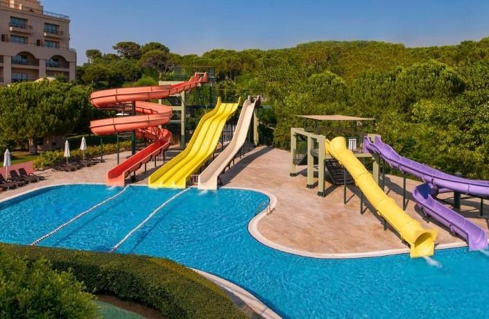 Hotel poseduje glavni restoran i 4 a la carte restorana (italijanski, azijski, turski, riblji), dijetetski meni, 5 barova, 3 spoljašnja bazena, unutrašnji bazen, 5 vodenih tobogana,spa centar, novinarnicu, menjačnicu, salu za konferencije, tursko kupatilo, saunu, parno kupatilo, jacuzzi, teretanu, aerobik, akvabik, odbojku na plaži, košarku, stoni tenis, pikado, animacioni program, diskoteku, teniski teren, dečiji meni,2 dečija bazena, 2 dečija vodena tobogana, dečije igralište, mini klub.