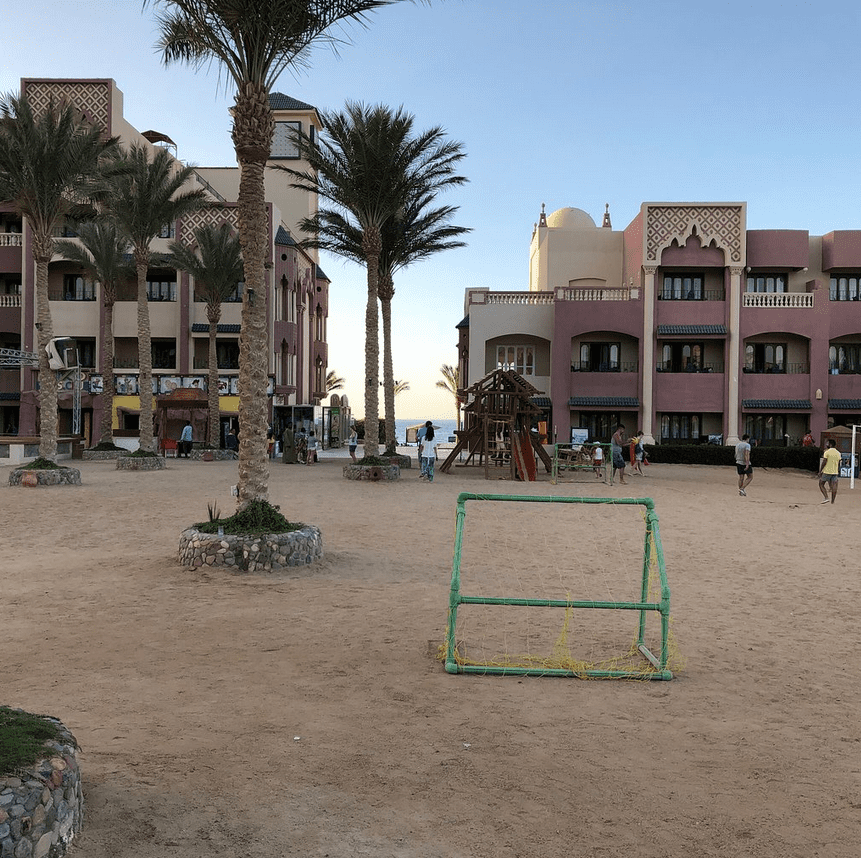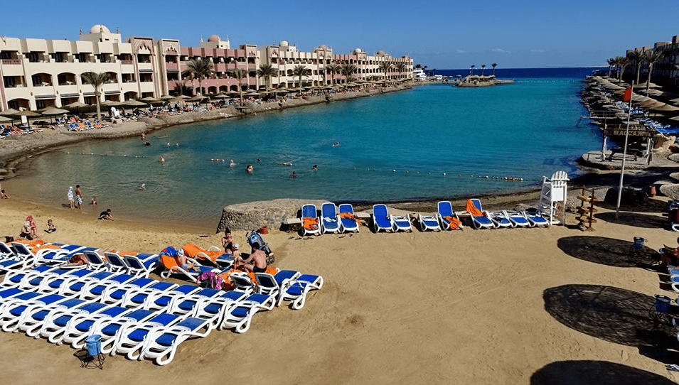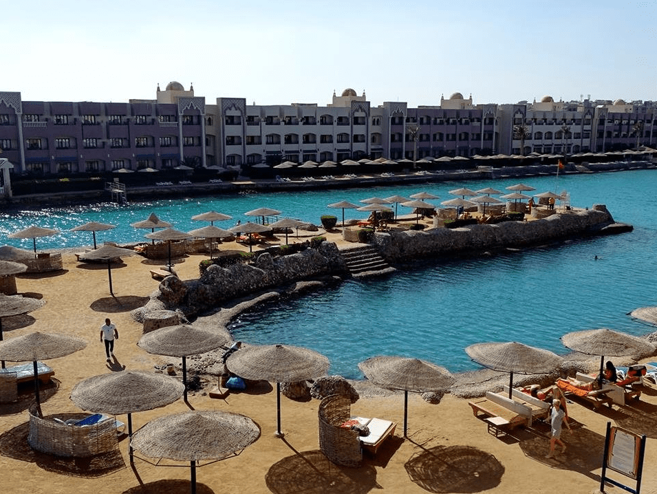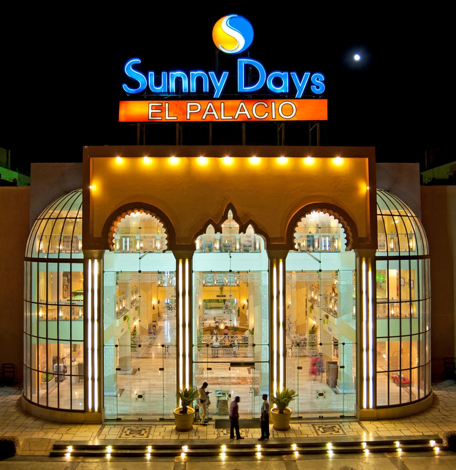 Smeštaj: Sunny Days Resort jedan je od poznatijih i većih hotela u ovom delu Hurgade sa velikim brojem smeštajnih jedinica i zgradom u obliku slova U sa pogledom na lagunu ili more, lepo uređenu recepciju, dva bazena, lobi, sala za sastanke, glavni i 3 a la carte restorana, nekoliko barova i oriental cafe. U okviru hotela nalazi se otvoreni bazen za decu i odrasle (u toku zime se greje), igralište za decu, stoni tenis, teren za odbojku, fitness centar zabranjen je za mlađe od 16 godina, mala banka kod recepcije. Za najmlađe tu je animacija, dečiji klub i mini disco. Wi-Fi internet je besplatan u lobiju.