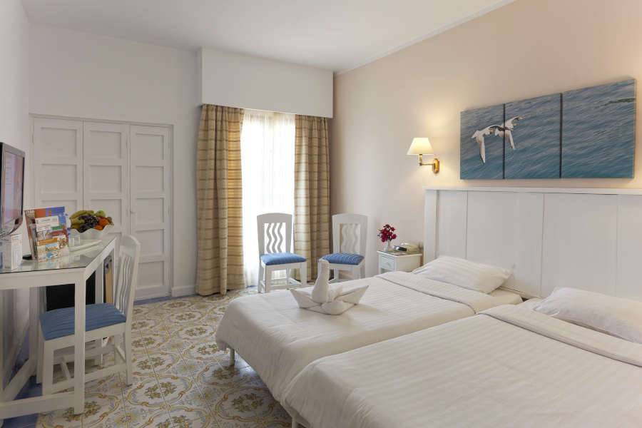 Smeštaj: Sobe su dvokrevetne (dva odvojena ležaja ili bračni ležaj) ili dvokrevetne sa pomoćnim ležajem (dva odvojena ležaja ili bračni ležaj i pomoćni ležaj. Sobe imaju: klima uređaj, kupatilo (tuš/kada), fen za kosu, SAT TV, mini bar (uz doplatu, na licu mesta), sef, električno kuvalo, balkon/terasa.
