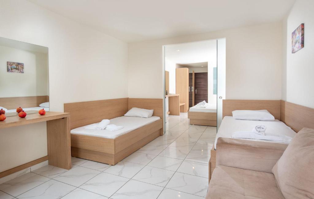 Sadržaj soba: klima uređaj, frižider, SAT TV, kupatilo (kada/tuš), fen za kosu (na recepciji), balkon / terasa.