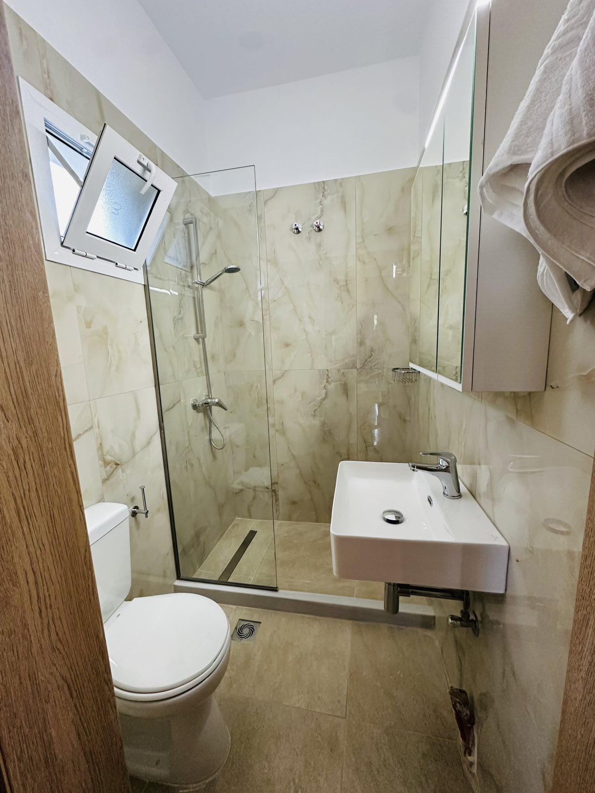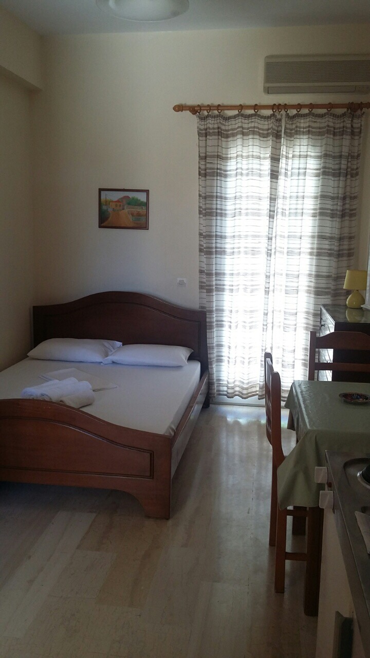 DVOKREVETNI STUDIO: sastoji se od sobe sa francuskim ležajem, TV/KAT, ormanom za stvari, noćnim stočićem i klima uređajem, potpuno opremljena kuhinja. Takođe, studio poseduje i kupatilo sa tuš/WC, kao i terasu sa stolom.