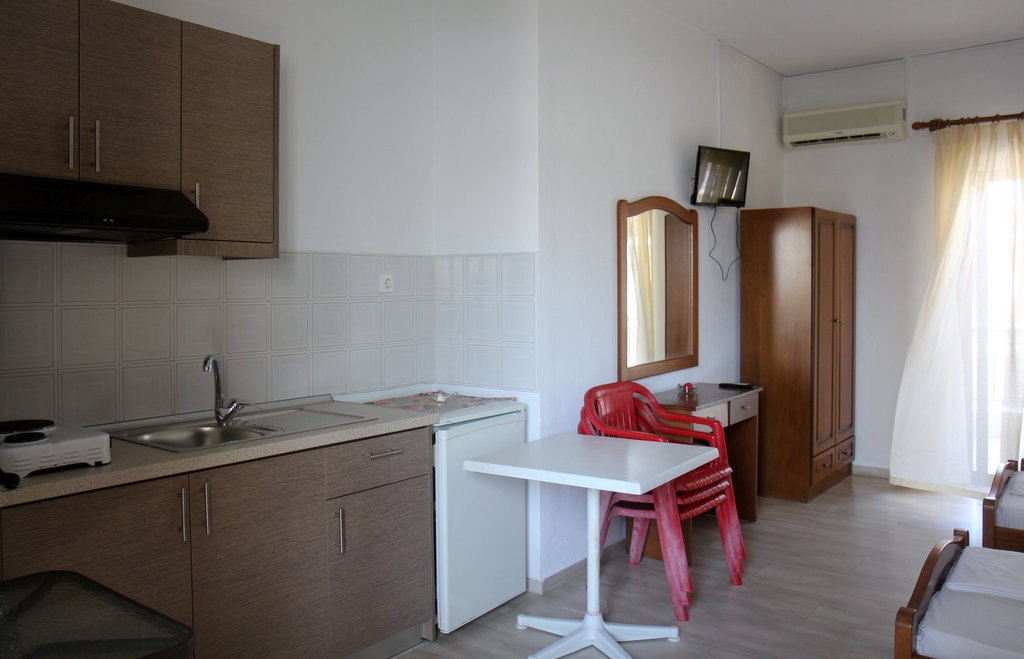 1/3 studio – u jednoj prostoriji čajna kuhinja i tri standardna ležaja ili francuski ležaj i jedan sing ležaj.