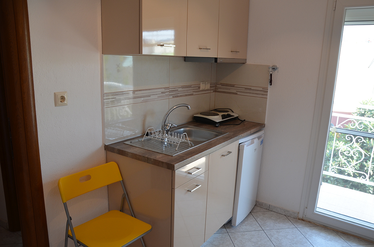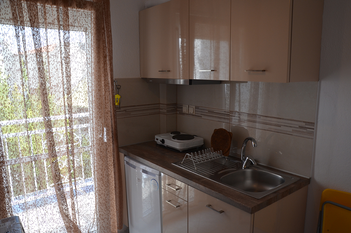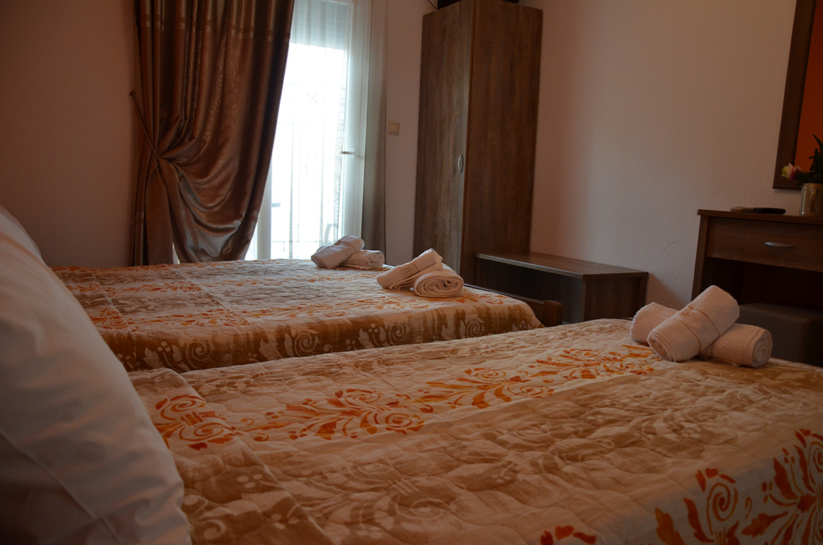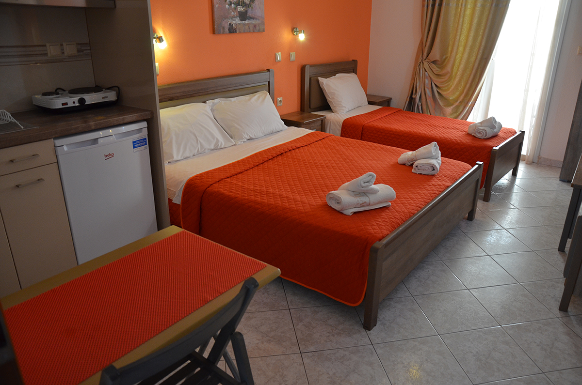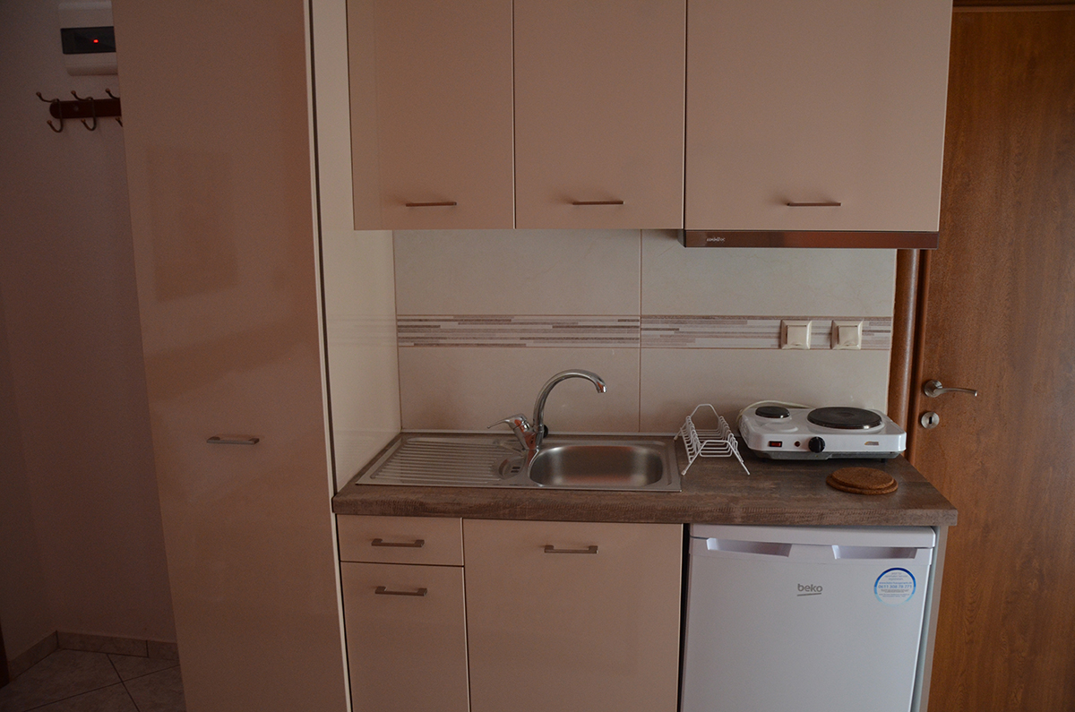 Dvokrevetni/trokrevetni studio: dvokrevetni studio poseduje francuski ležaj ili 2 standardna ležaja, dok trokrevetni pored toga poseduje i treći standardni ležaj. U sklopu studija se nalazi i kuhinja sa rešoom, frižiderom; TV, klima uređaj, kupatilo sa tušem, terasa sa garniturom za sedenje.