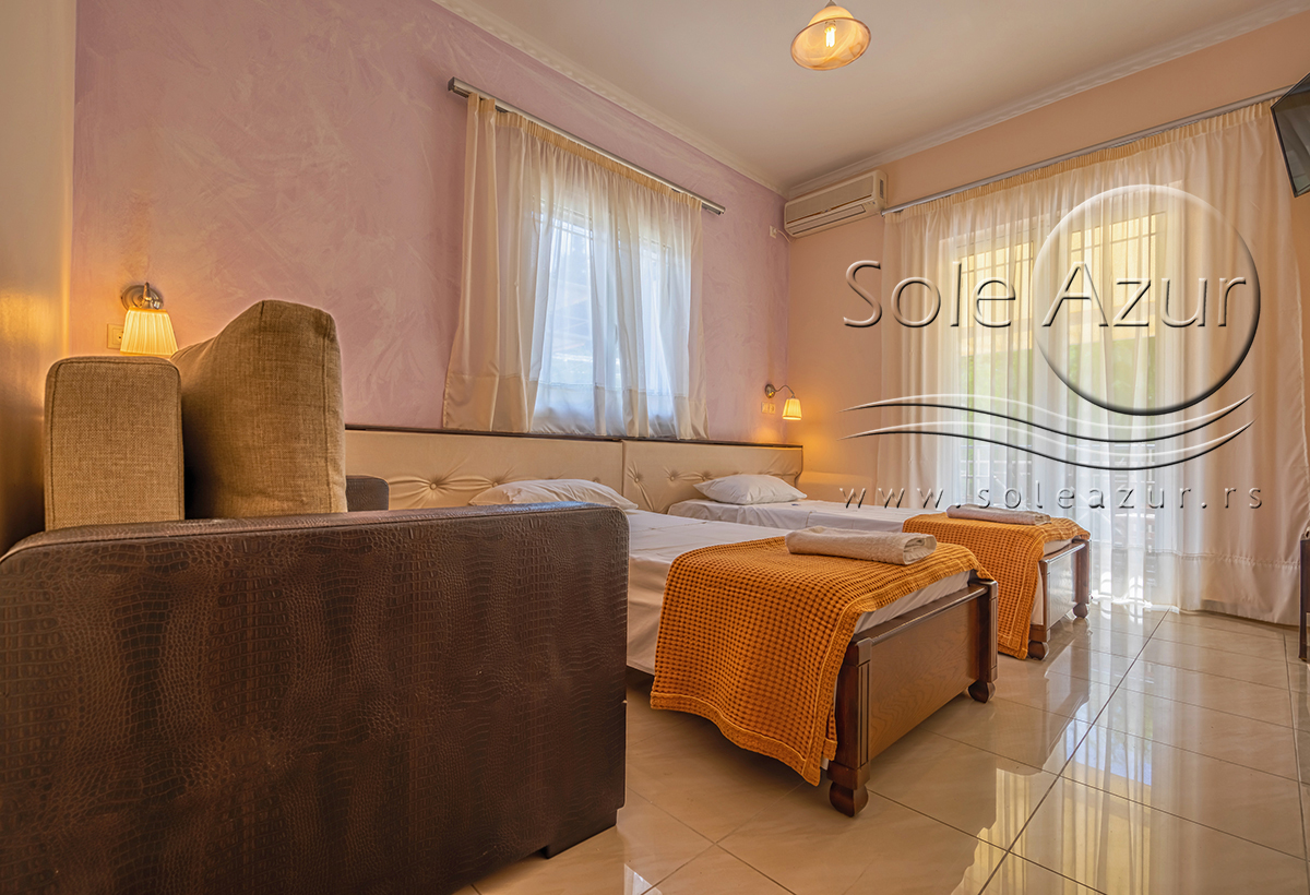 * Dimenzije ležaja u Grčkoj se razlikuju od naših standarda. Grčki standard za normalan ležaj je 75-80 cm sa 185-190 cm, francuz 120 x 190 cm i bračni ležaj 140-155 cm sa 180-190 cm. Pomoćni ležaj u svim objektima u Grčkoj je na sklapanje, drvene ili metalne konstrukcije ili fotelje na rasklapanje, manjih dimenzija.
