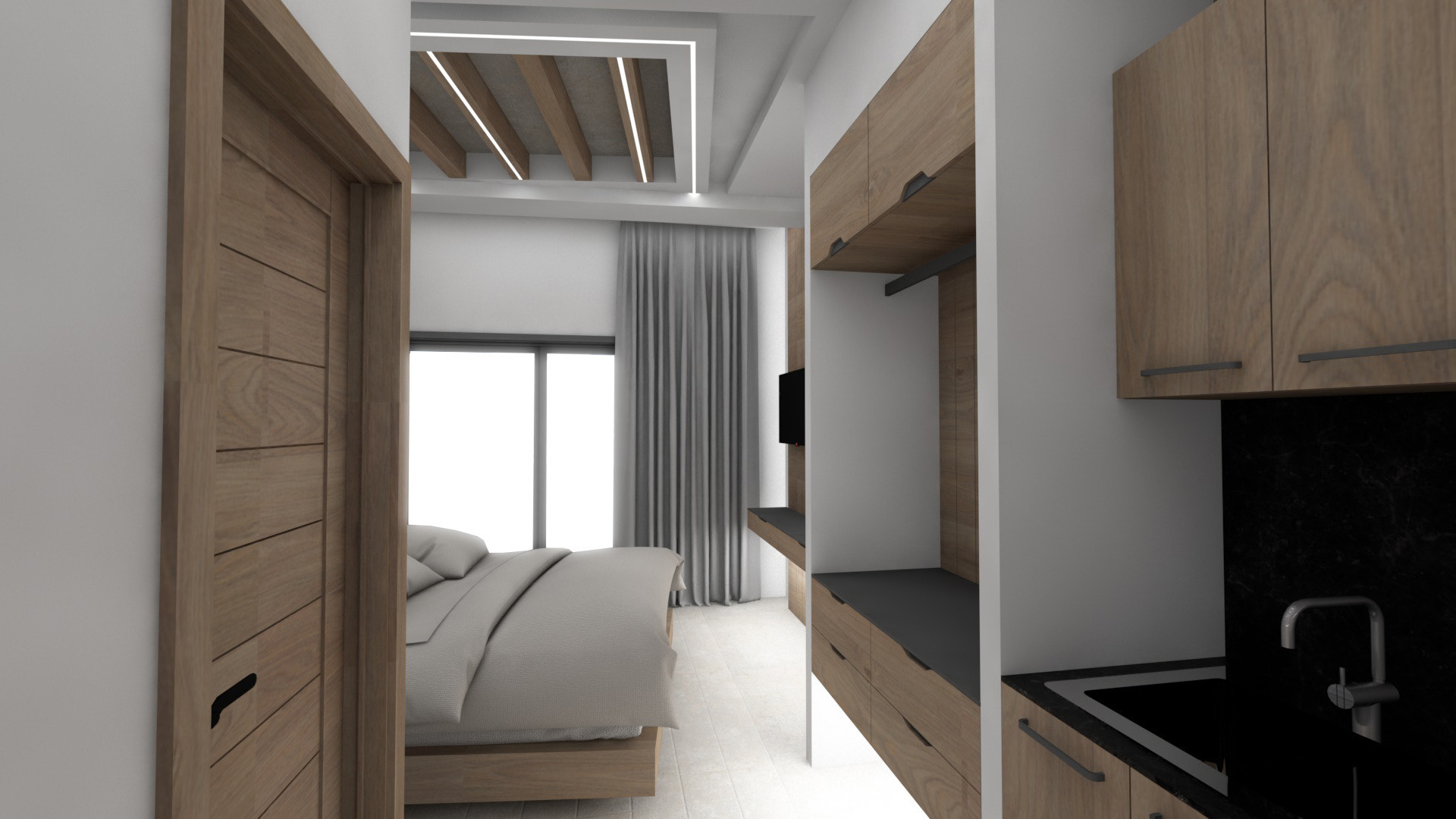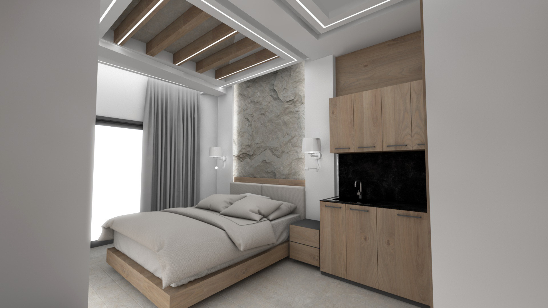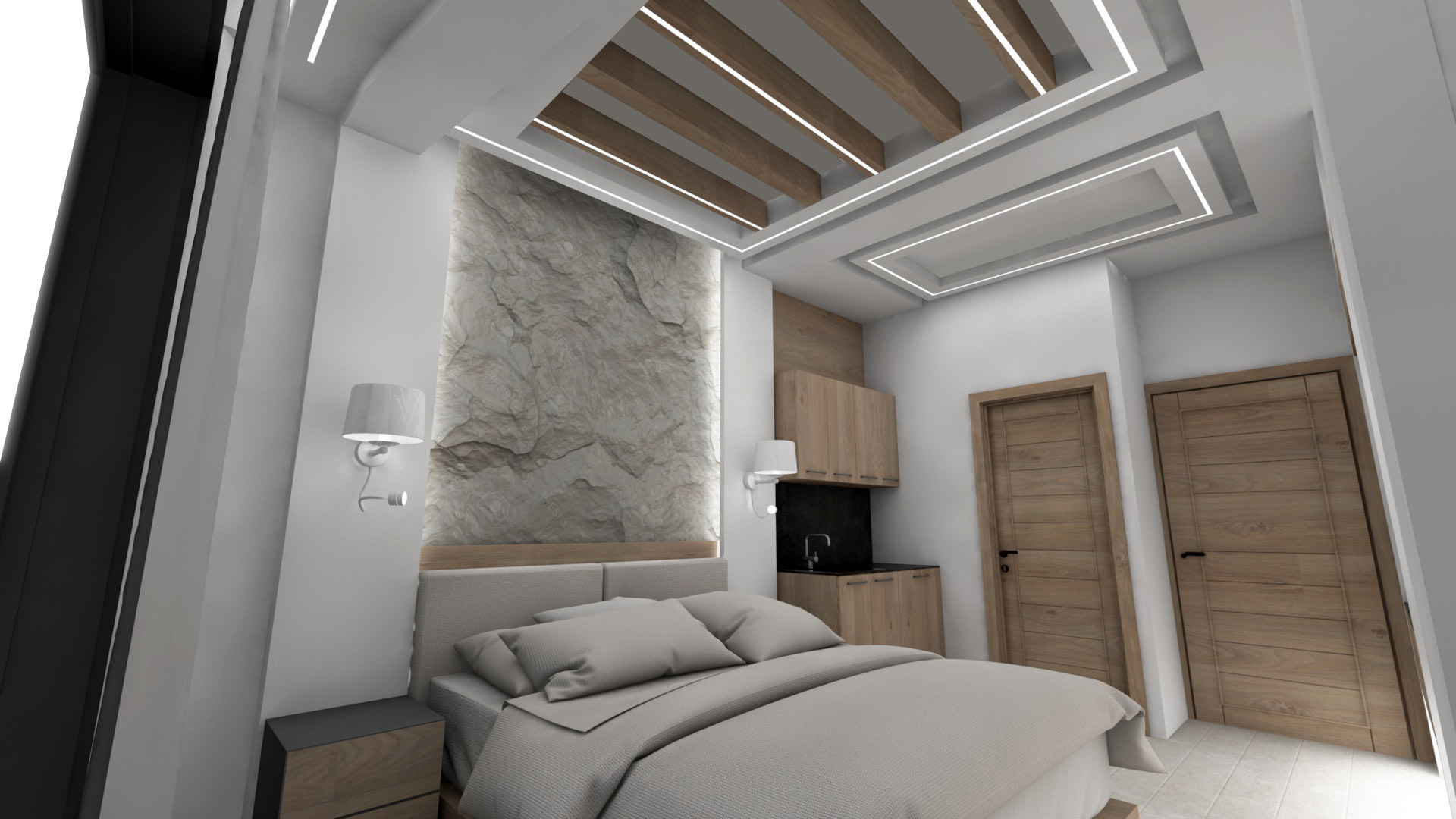 DVOKREVETNI STUDIJI: Studiji se nalaze na prvom i drugom spratu i sastoje se od francuskog ležaja dimenzija 200x140cm ili dva standardna sing ležaja, TV/KAT, klima uređaj (korišćenje je besplatno), noćni stočić, orman, kao i kuhinjski deo koji je u potpunosti opremljen sa posuđem, rešo sa dve ringle, frižider, aspirator. Kupatila imaju tuš/wc.