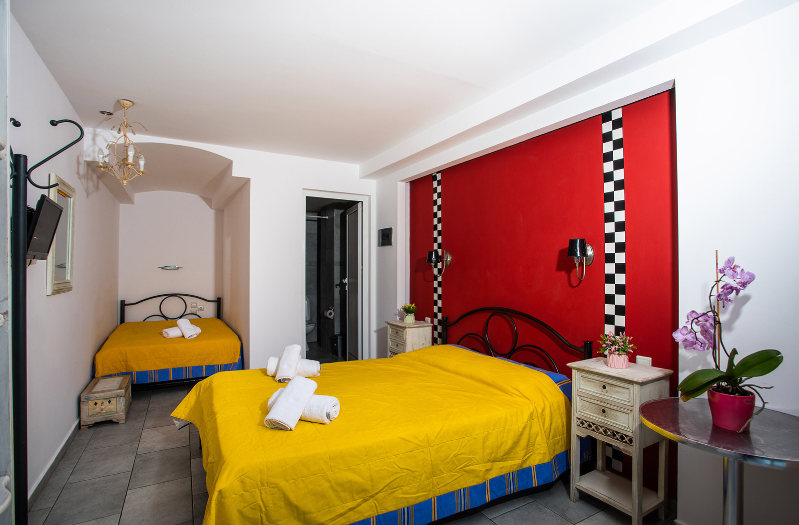 ČETVOROKREVETNI STUDIJI: Studiji se nalaze u dvorišnom delu kuće (pitati u agenciji za detaljniji opis). Studiji se sastoje od jedne prostorije sa po jednim francuskim ležajem dimenzija 190x150cm, i još jednim francuskim ležajem dimenzija 190x120cm, ili krevetima na sprat standardnih dimenzija 190x90cm. Studiji takođe poseduju i , TV/KAT, klima uređaj (korišćenje je besplatno), noćni stočić, orman, kao i kuhinjski deo koji je u potpunosti opremljen sa posuđem, rešo sa dve ringle, frižider, aspirator. Kupatila su sa ukusom napravljena i imaju tuš/wc. Terase dvorišnih studija su prostrane, ali prolazne i gledaju na zadnji deo kuće, kao i na krovove drugih kuća.