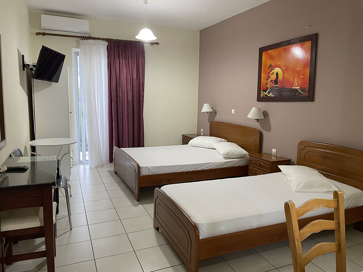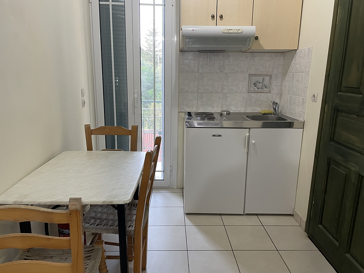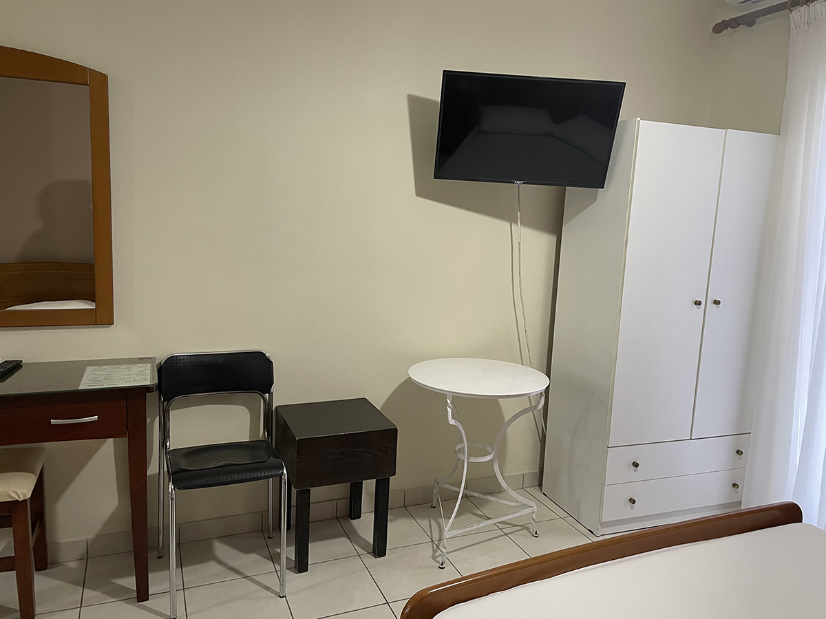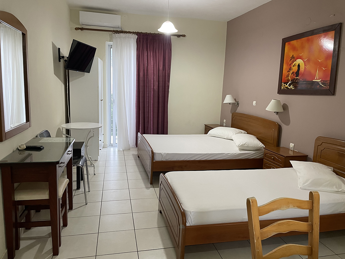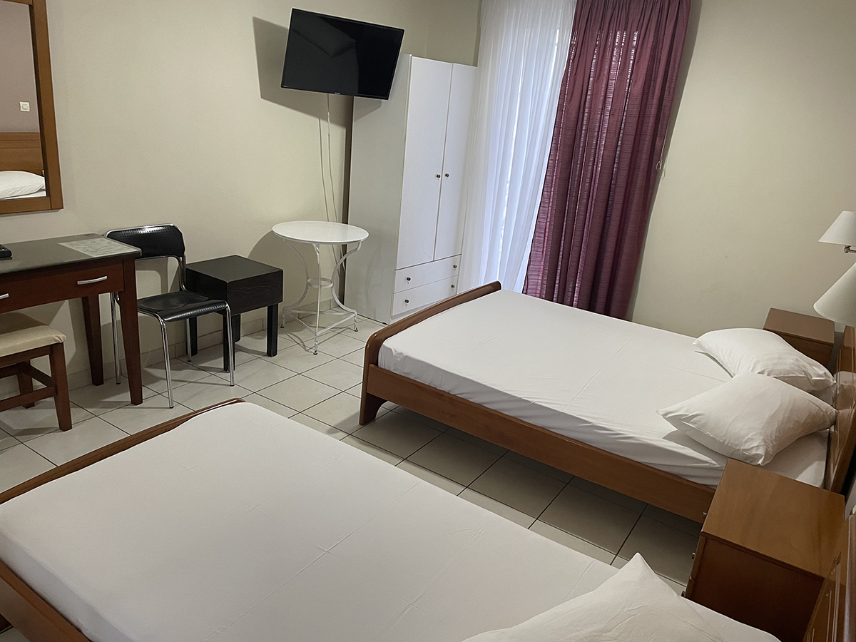 Dvokrevetni/trokrevetni studio: Svaki studio se sastoji od jednog francuskog i jednog singl ležaja ili tri singl standardna ležaja, dva noćna stočića pored kreveta, dve lampe, TV, klima uređaj, ormar. Kuhinja se sastoji od šporeta sa dve ringle, frižidera, aspiratora i neophodnog posuđa za dve/tri osobe. Kupatilo sadrži tuš kabinu. Na terasu se izlazi iz spavaće sobe. Terasa se sastoji od stola sa dve/tri stolice.