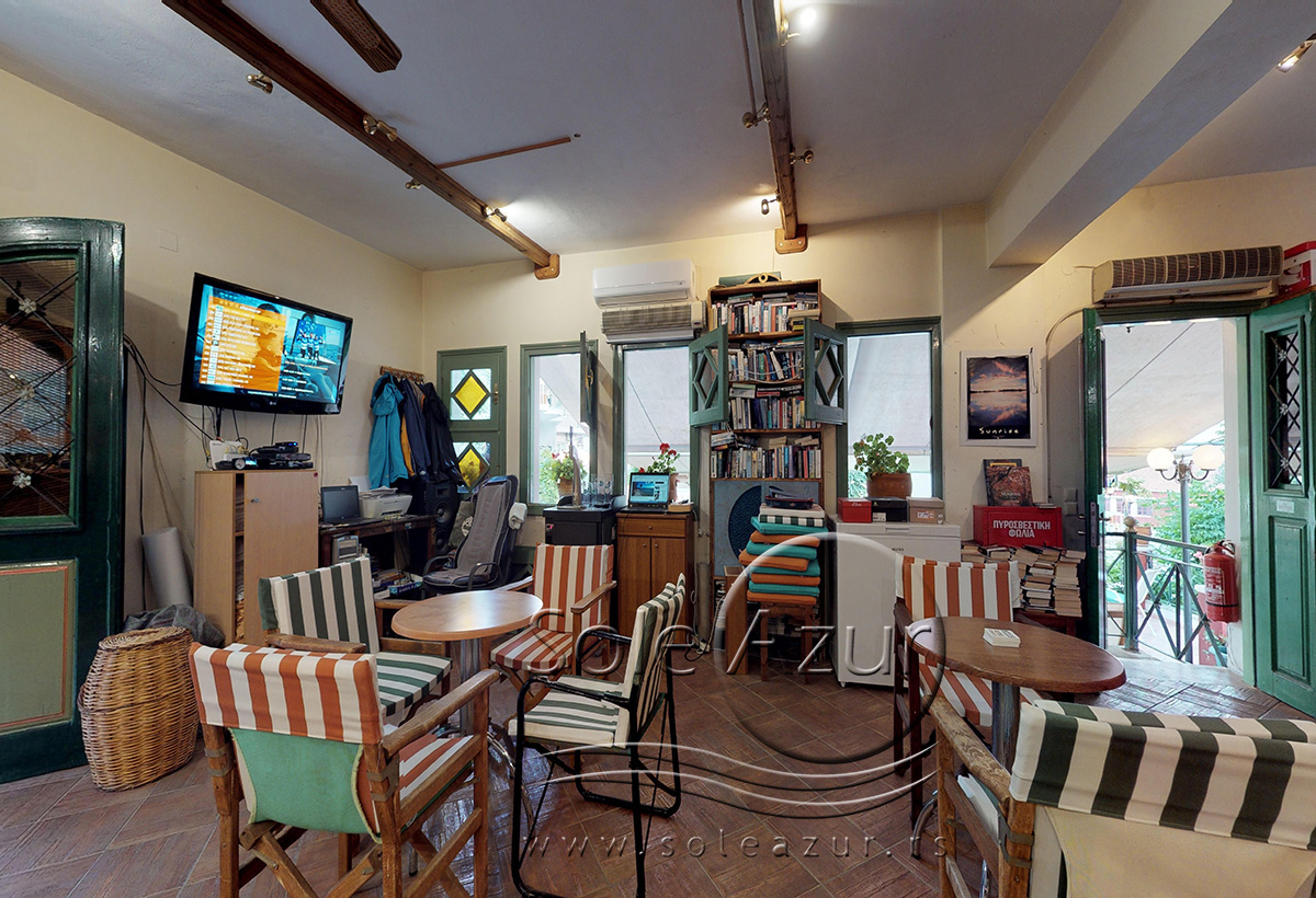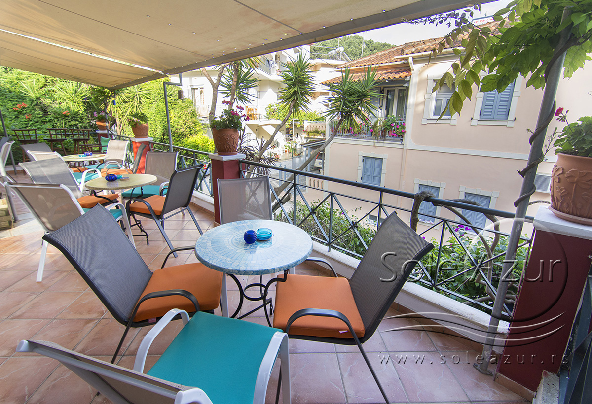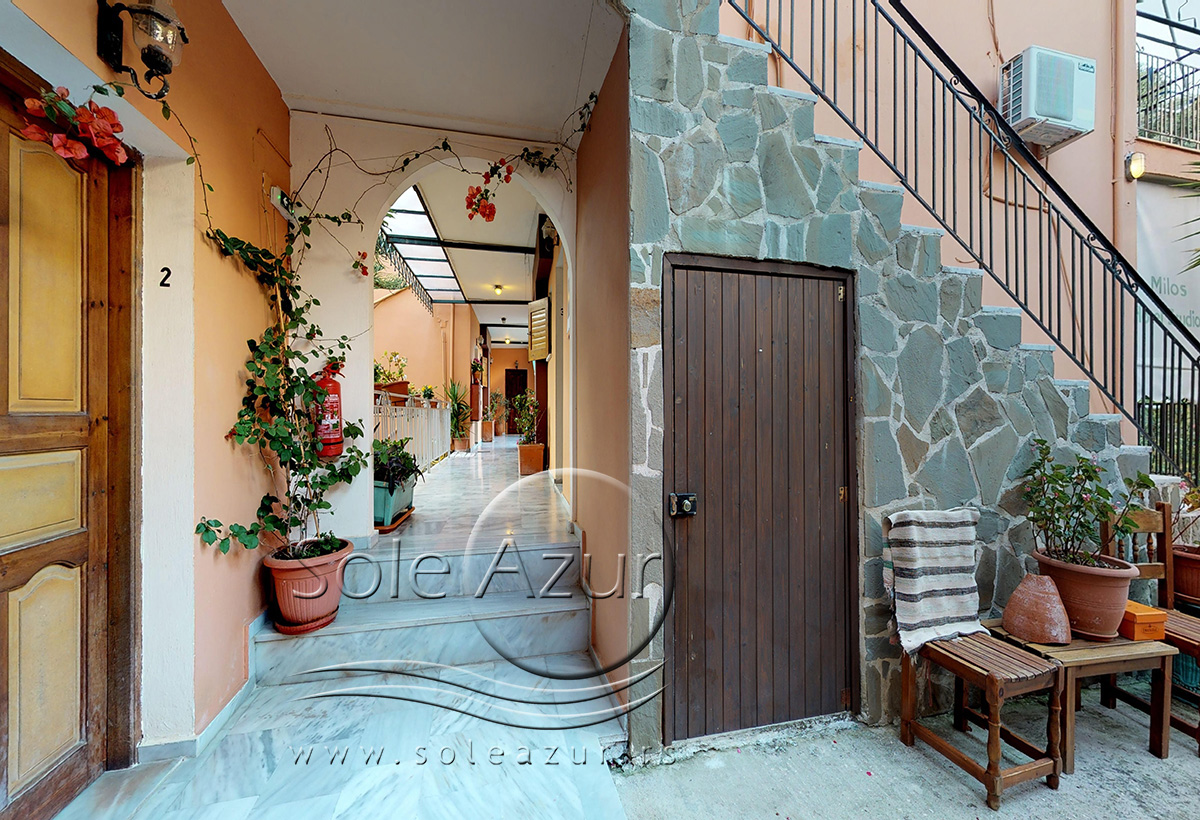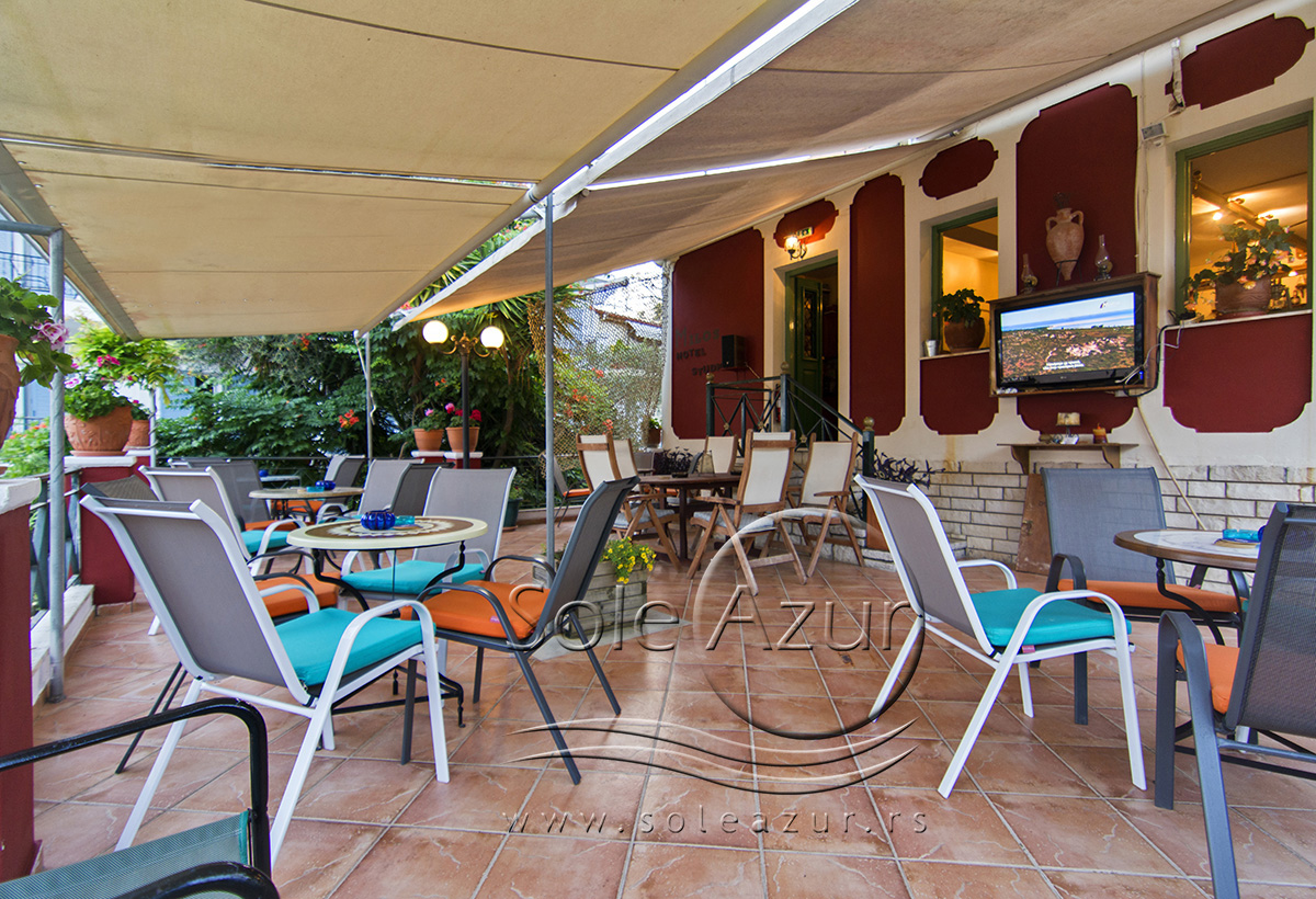 U sastavu Vile Milos studios se nalaze dve zgrade gde su smešteni studiji, kao i treći objekat gde je recepcija i prelepi restoran bar gde gosti mogu uživati uz meze i piće i odgledati aktuelnu utakmicu. Sam objekat je okružen zelenilom, tako da imate osećaj kao da ste u nekom parku, a ne u strogom centru Parge. U ogromnom dvorištu Vile postavljeni su stolovi sa stolicama tako da gosti mogu uživati u prirodi.
