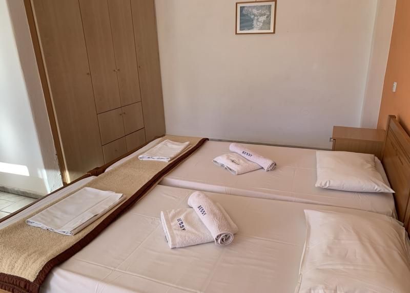 Dvokrevetni i trokrevetni studiji – nalaze se na prvom i drugom spratu ove vile. Dvokrevetni studio poseduje dva singl ležaja ili francuski ležaj, dok kod trokrevetnog studija se u ovom delu nalazi još jedan sing ležaj, TV, klima uređaj. Studiji u svom sastavu poseduju kuhinju sa frižiderom i rešoom, kao i advekatnim brojem posuđa. Svaki studio poseduje kupatilo sa tuš/wc, kao i terasu sa garniturom za sedenje.