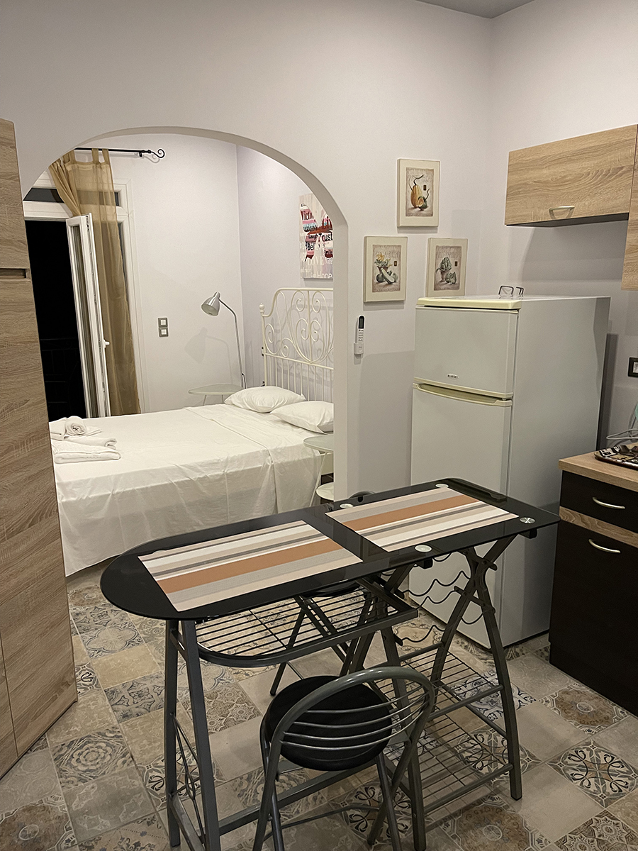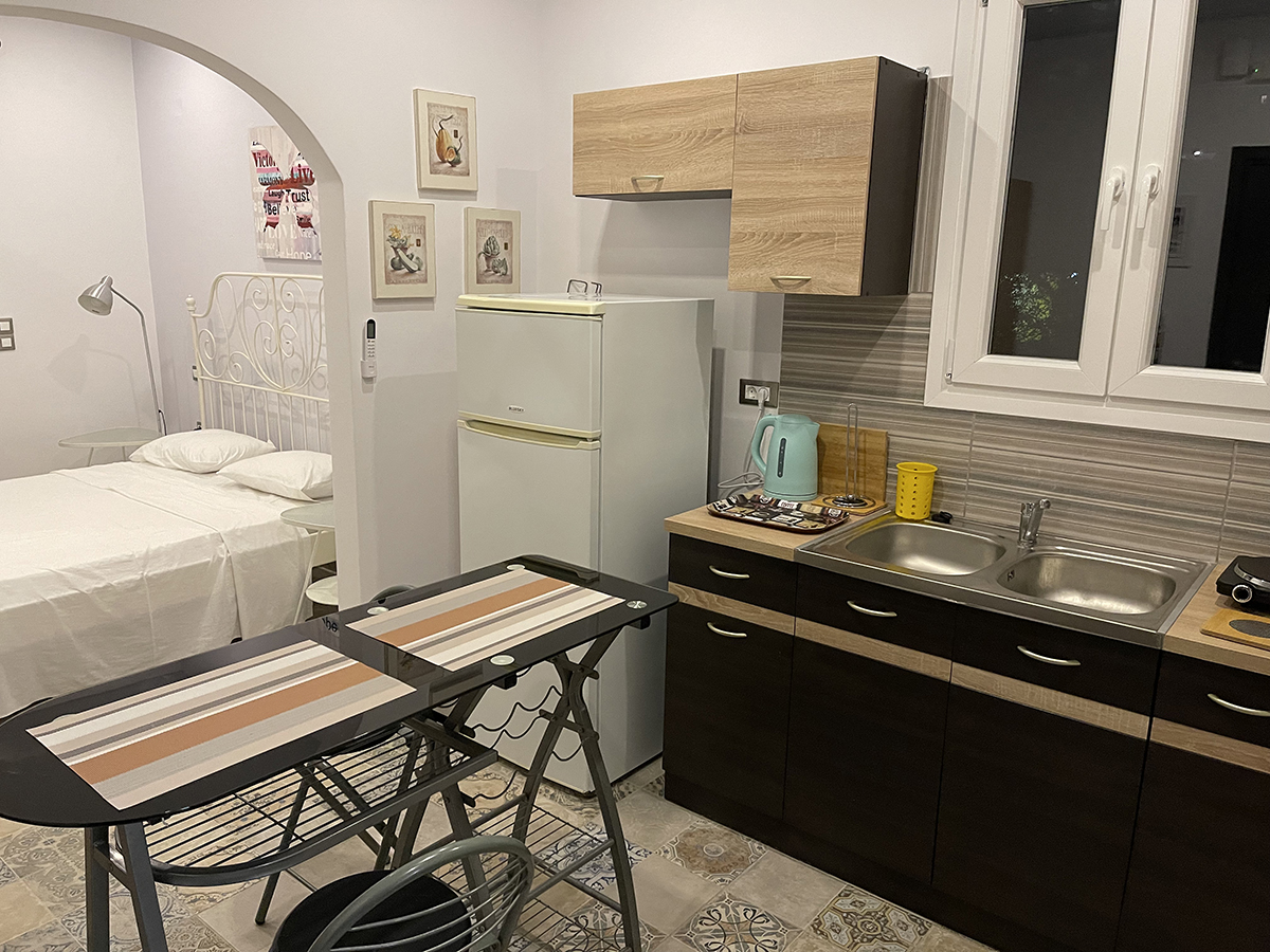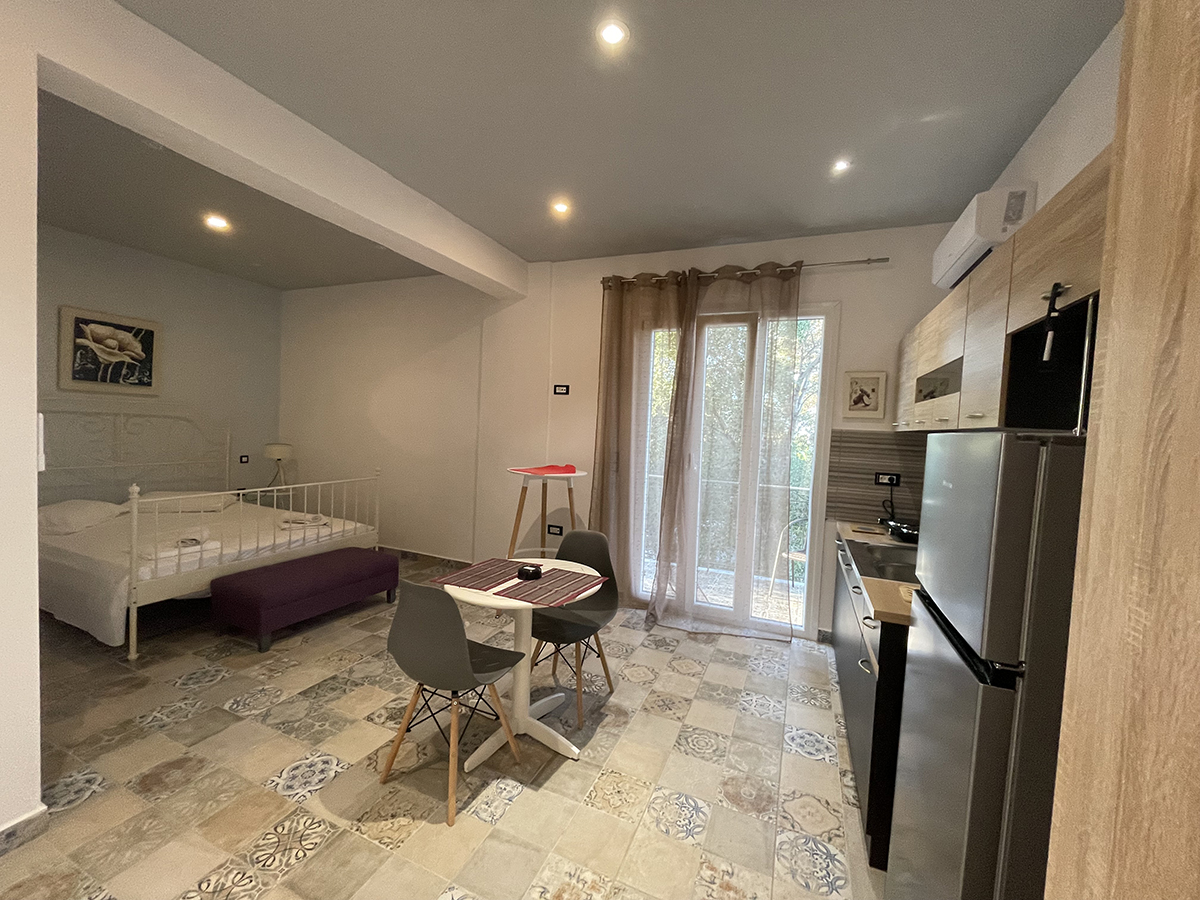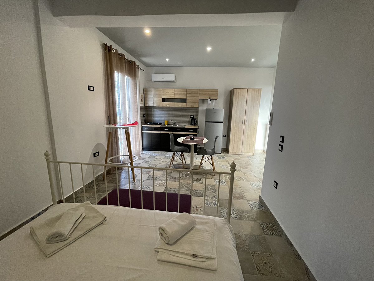 Dvokrevetni studio – poseduje 1 francuski ili 2 sing ležaja, orman za stvari, noćni stočić i klima uređaje, kuhinju opremljenu osnovnim posuđem. Takođe, studio poseduje i kupatilo sa tuš/WC, kao i terasu sa garniturom za sedenje.