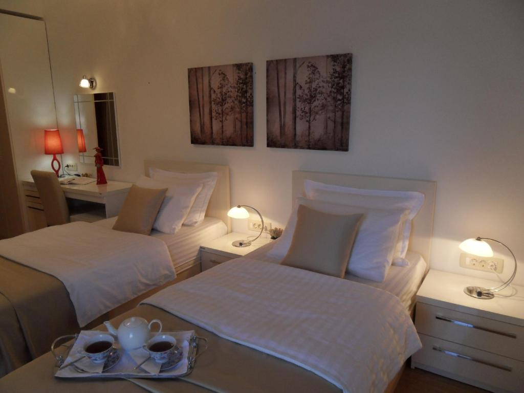 Smeštaj: Sve sobe i apartmani sadrže TV sa satelitskim programima, radni sto, frižider i ormar. Svaka smeštajna jedinica ima sopstveno kupatilo sa tušem, a takođe uključuje fen za kosu i besplatne toaletne potrepštine. Apartmani takođe imaju potpuno opremljenu kuhinju. Postoji privatno stepenište koje vodi direktno do plaže.