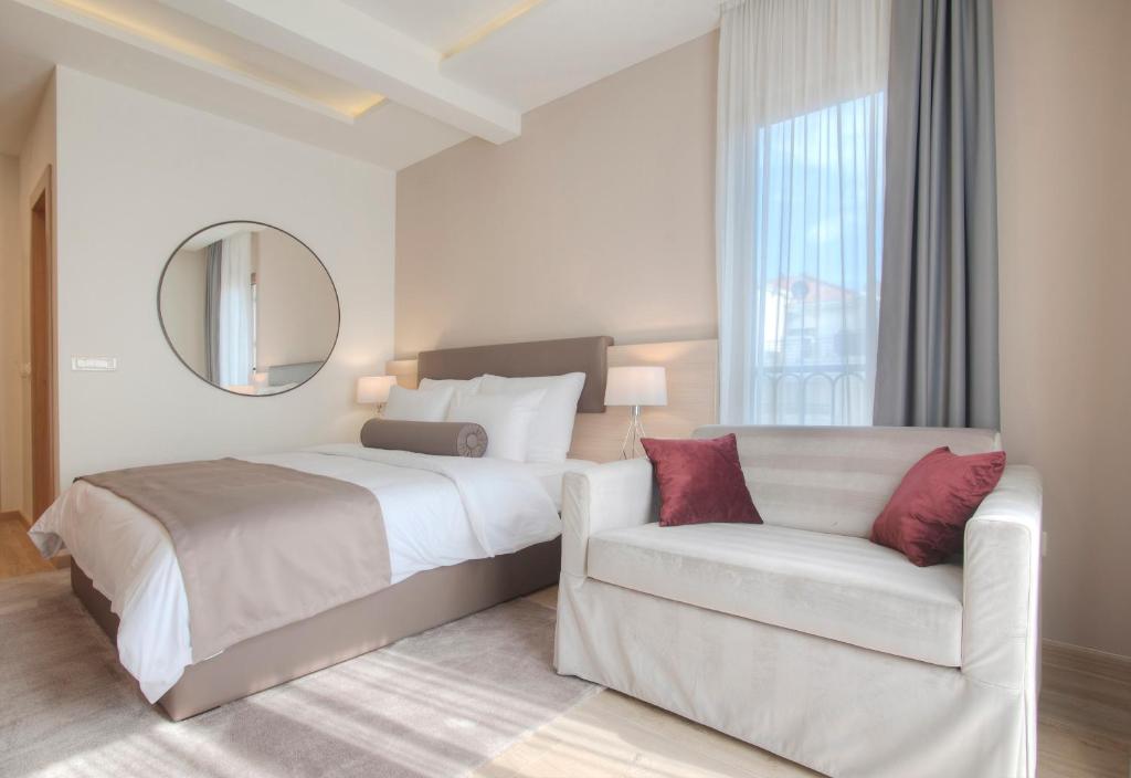 Objekat raspolaže kapacitetom od 17 dvokrevetnih soba/apartmana (sa i bez pomoćnih ležajeva) i jednim stanom sa odvojenom spavaćom sobom. Svi apartmani su opremljeni izuzetno kvalitetnim materijalima, od podova, koji su rađeni od uvozne španske keramike Porcelnosa i Venis, preko sanitarija u kupatilu, sa potpisom Villeroy & Boch, do posteljine od čistog damasta, peškira i ukusno osmišljenog i precizno izrađenog namještaja, kako bi se gostima, tokom boravka obezbijedio maksimalan ugođaj svim čulima. Svi apartamani poseduju kablovsku TV, klima uređaj, podno grejanje u kupatilima (po potrebi), fen za kosu, mini bar, sef. Čišćenje apartmana i promena peškira vrši se svakog dana, dok se posteljina menja, u zavisnosti od broja noćenja i potreba gostiju, od prilike na svakih 4 – 5 dana